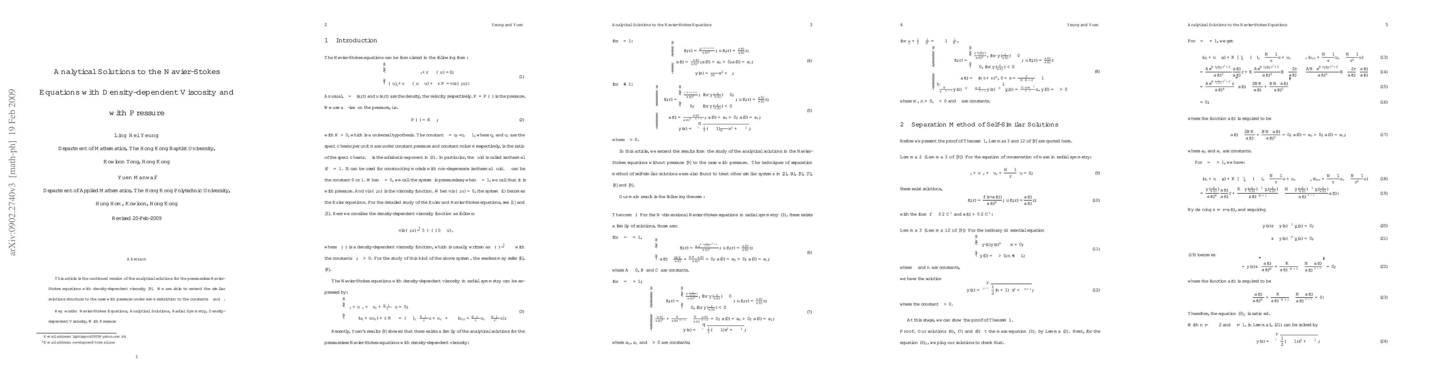 This paper extends analytical solutions for the Navier-Stokes equations to include density-dependent viscosity and pressure, building on previous work. It introduces a similar solution structure under specific constraints for $\gamma$ and $\theta$.