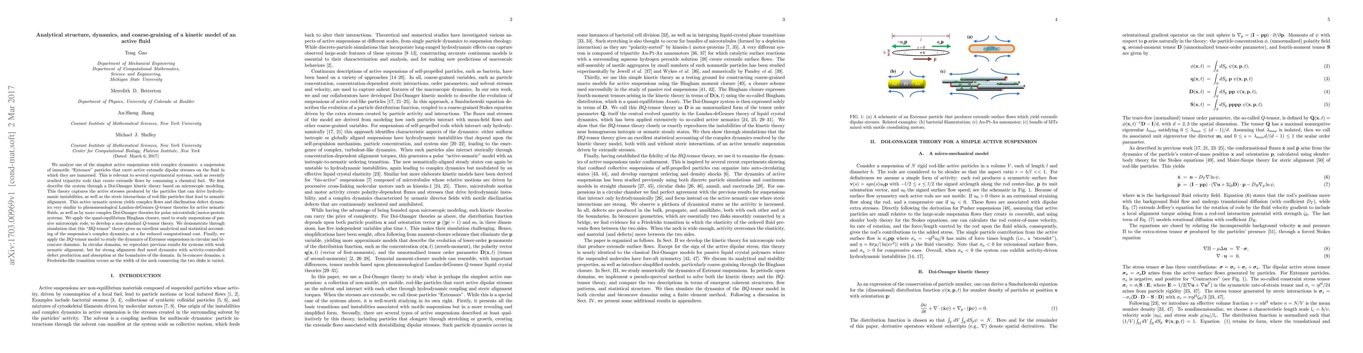 We analyze one of the simplest active suspensions with complex dynamics: a suspension of immotile "Extensor" particles that exert active extensile dipolar stresses on the fluid in which they are immersed. This is relevant to several experimental systems, such as recently studied tripartite rods that create extensile flows by consuming a chemical fuel. We first describe the system through a Doi-Onsager kinetic theory based on microscopic modeling. This theory captures the active stresses produced by the particles that can drive hydrodynamic instabilities, as well as the steric interactions of rod-like particles that lead to nematic alignment. This active nematic system yields complex flows and disclination defect dynamics very similar to phenomenological Landau-deGennes Q-tensor theories for active nematic fluids, as well as by more complex Doi-Onsager theories for polar microtubule/motor-protein systems. We apply the quasi-equilibrium Bingham closure, used to study suspensions of passive microscopic rods, to develop a non-standard Q-tensor theory. We demonstrate through simulation that this "BQ-tensor" theory gives an excellent analytical and statistical accounting of the suspension's complex dynamics, at a far reduced computational cost. Finally, we apply the BQ-tensor model to study the dynamics of Extensor suspensions in circular and bi-concave domains. In circular domains, we reproduce previous results for systems with weak nematic alignment, but for strong alignment find novel dynamics with activity-controlled defect production and absorption at the boundaries of the domain. In bi-concave domains, a Fredericks-like transition occurs as the width of the neck connecting the two disks is varied.