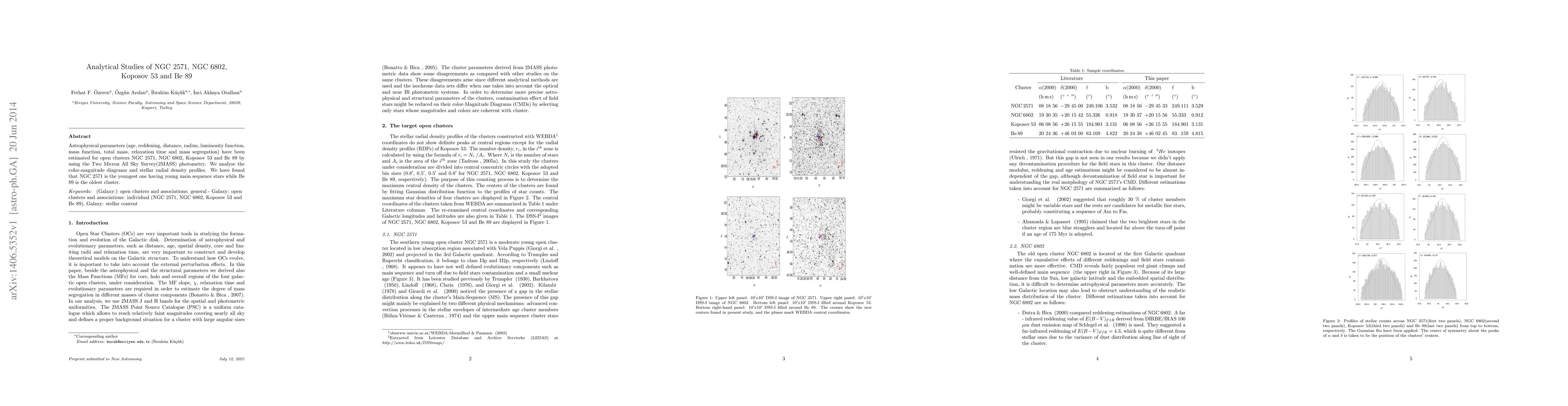 This study analyzes open clusters NGC 2571, NGC 6802, Koposov 53, and Be 89 using 2MASS photometry. It finds that NGC 2571 is the youngest cluster with young main sequence stars, while Be 89 is the oldest.