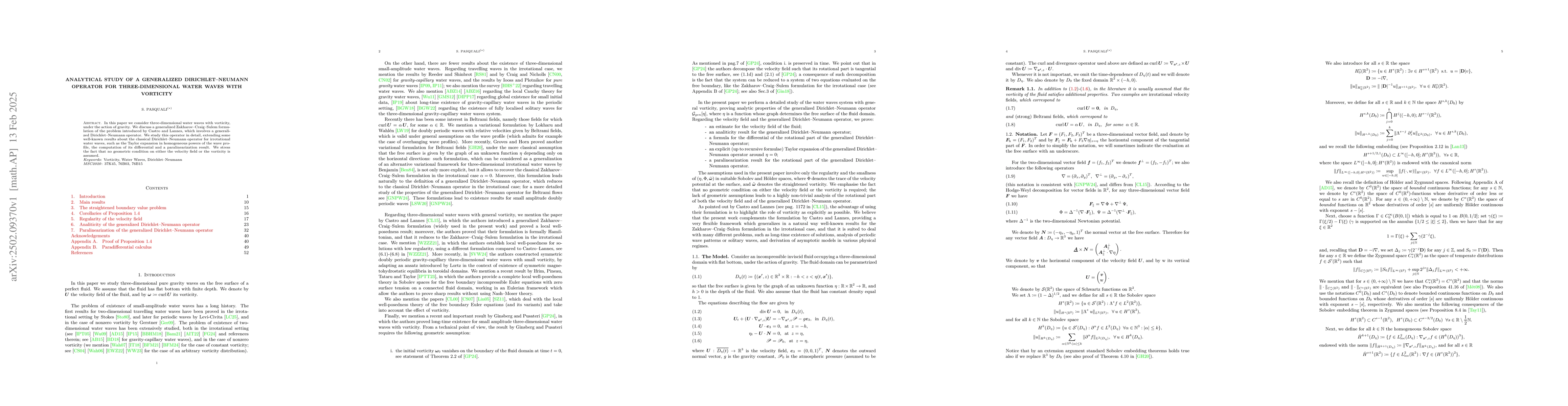 The paper extends classical results on the Dirichlet-Neumann operator to include vorticity, providing a detailed analysis of a generalized formulation for three-dimensional water waves.