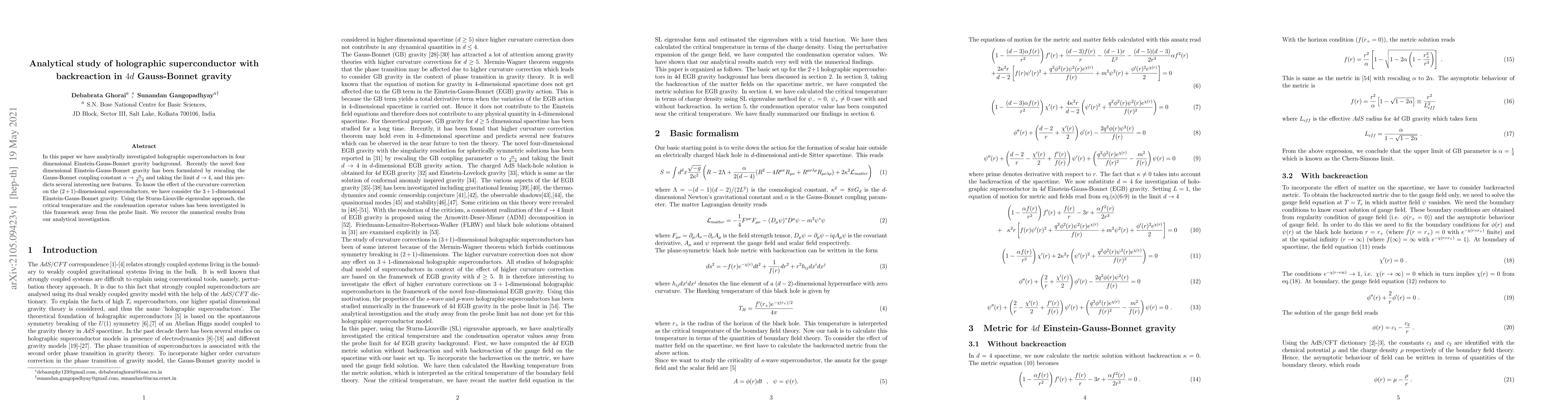 This paper analytically studies holographic superconductors in $4d$ Einstein-Gauss-Bonnet gravity, examining the effects of curvature corrections on superconductivity. It employs a Sturm-Liouville approach to determine critical temperature and condensation operator values, recovering numerical results from analytical calculations.