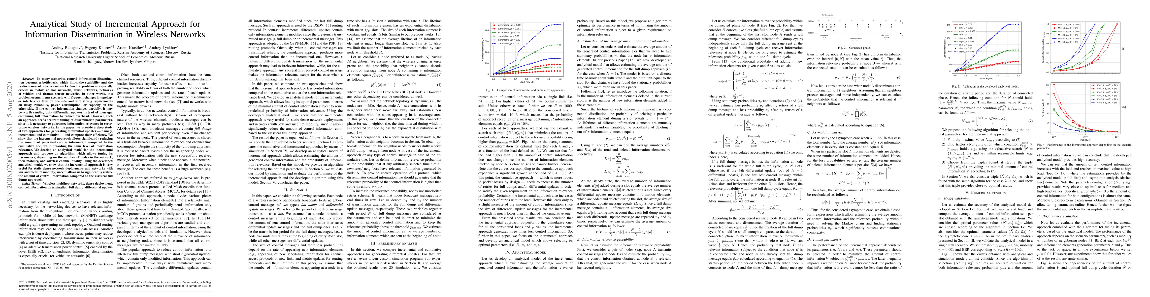 This paper investigates the incremental approach for disseminating control information in wireless networks, comparing it to the cumulative approach. The study finds that the incremental method significantly reduces control information while maintaining relevance, especially in dense and mobile networks. An analytical model and tuning algorithm are developed to optimize the approach based on network parameters.