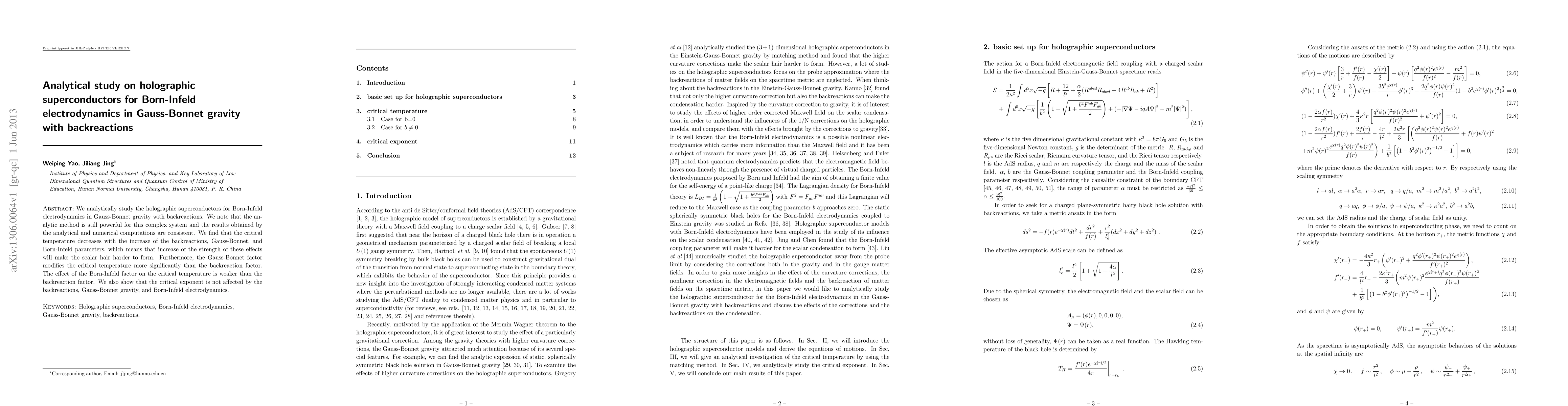 We analytically study the holographic superconductors for Born-Infeld electrodynamics in Gauss-Bonnet gravity with backreactions. We note that the analytic method is still powerful for this complex system and the results obtained by the analytical and numerical computations are consistent. We find that the critical temperature decreases with the increase of the backreactions, Gauss-Bonnet, and Born-Infeld parameters, which means that increase of the strength of these effects will make the scalar hair harder to form. Furthermore, the Gauss-Bonnet factor modifies the critical temperature more significantly than the backreaction factor. The effect of the Born-Infeld factor on the critical temperature is weaker than the backreaction factor. We also show that the critical exponent is not affected by the backreactions, Gauss-Bonnet gravity, and Born-Infeld electrodynamics.