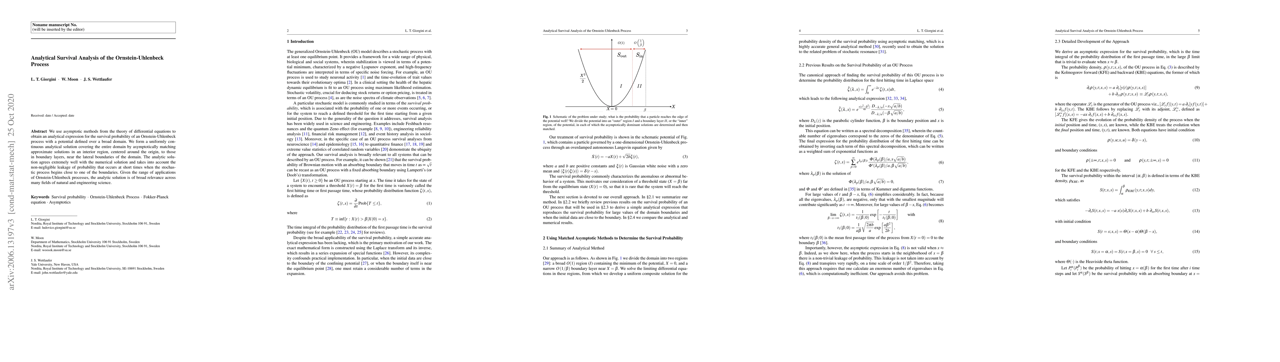This paper develops an analytical expression for the survival probability of an Ornstein-Uhlenbeck process using asymptotic methods, providing a uniformly continuous solution that matches approximate solutions across the entire domain and accurately accounts for initial boundary leakage. The derived analytic solution is highly accurate and applicable across various fields of natural and engineering sciences.