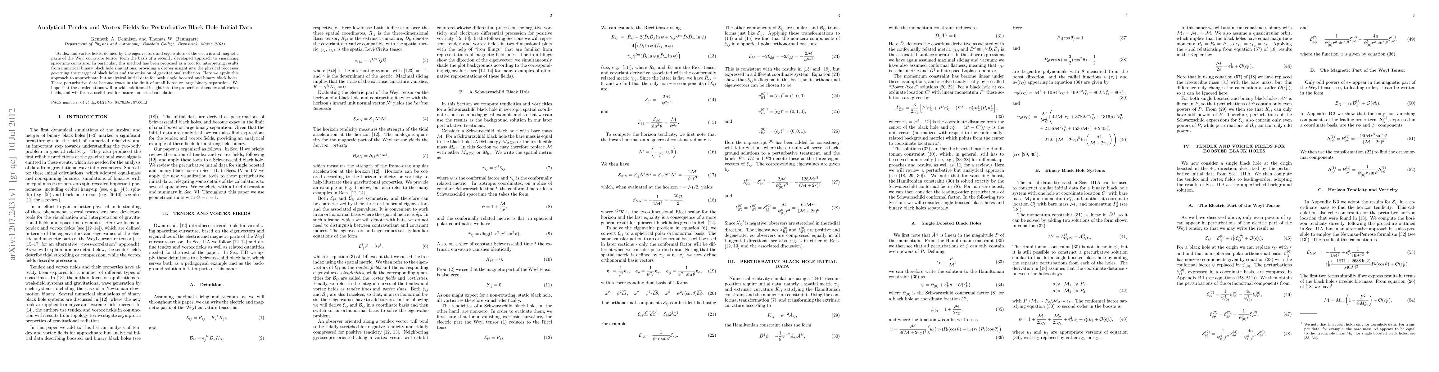 Tendex and vortex fields, defined by the eigenvectors and eigenvalues of the electric and magnetic parts of the Weyl curvature tensor, form the basis of a recently developed approach to visualizing spacetime curvature. In particular, this method has been proposed as a tool for interpreting results from numerical binary black hole simulations, providing a deeper insight into the physical processes governing the merger of black holes and the emission of gravitational radiation. Here we apply this approach to approximate but analytical initial data for both single boosted and binary black holes. These perturbative data become exact in the limit of small boost or large binary separation. We hope that these calculations will provide additional insight into the properties of tendex and vortex fields, and will form a useful test for future numerical calculations.