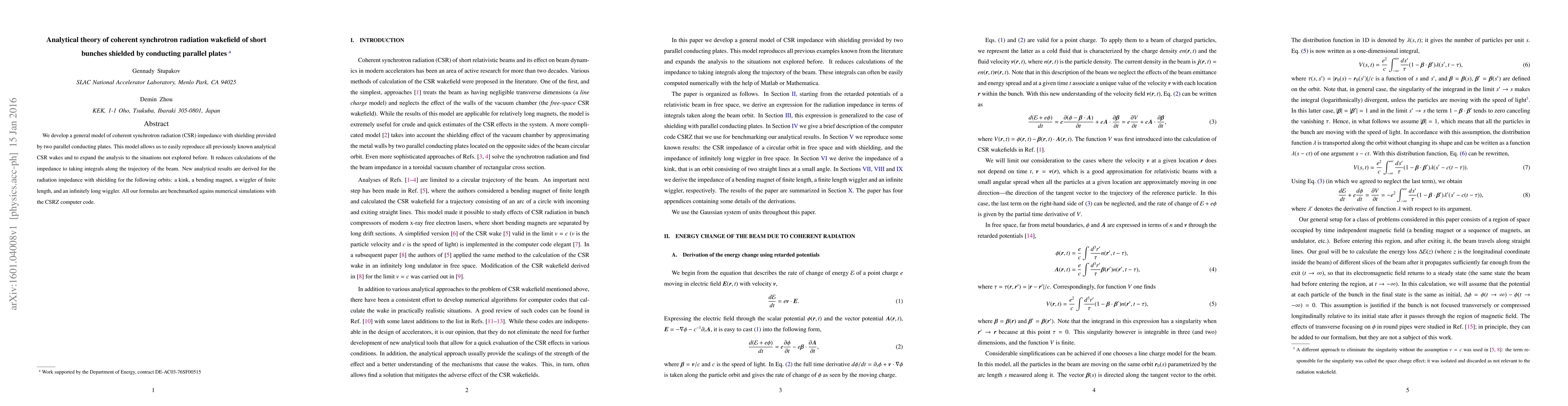 This paper presents an analytical model for the coherent synchrotron radiation (CSR) impedance shielded by parallel conducting plates, enabling the derivation of new analytical results for various beam orbits and benchmarking against numerical simulations. The model simplifies calculations by reducing them to integrals along the beam trajectory.