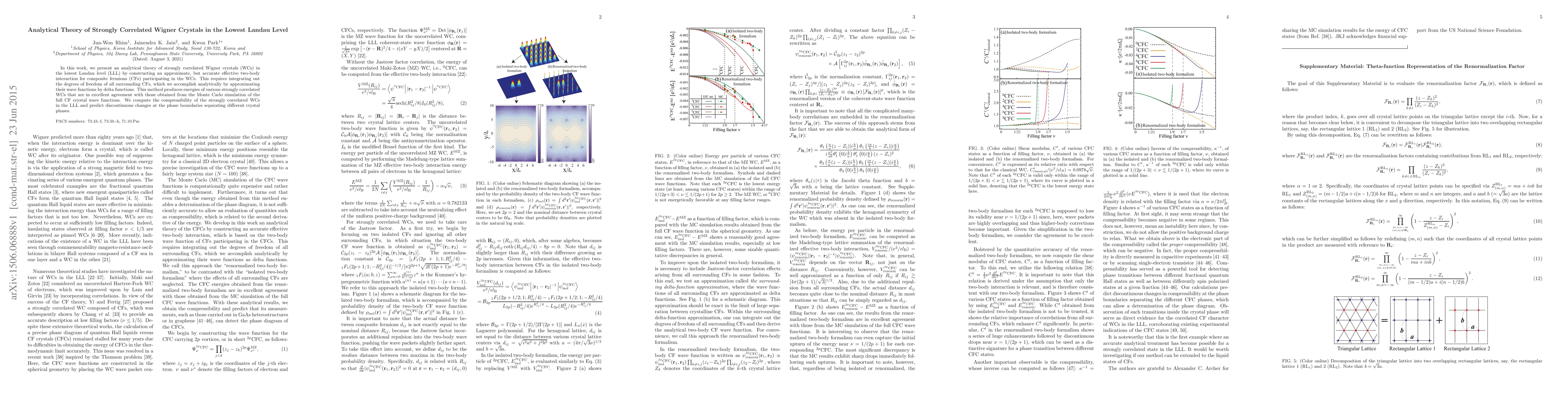 In this work, we present an analytical theory of strongly correlated Wigner crystals (WCs) in the lowest Landau level (LLL) by constructing an approximate, but accurate effective two-body interaction for composite fermions (CFs) participating in the WCs. This requires integrating out the degrees of freedom of all surrounding CFs, which we accomplish analytically by approximating their wave functions by delta functions. This method produces energies of various strongly correlated WCs that are in excellent agreement with those obtained from the Monte Carlo simulation of the full CF crystal wave functions. We compute the compressibility of the strongly correlated WCs in the LLL and predict discontinuous changes at the phase boundaries separating different crystal phases.