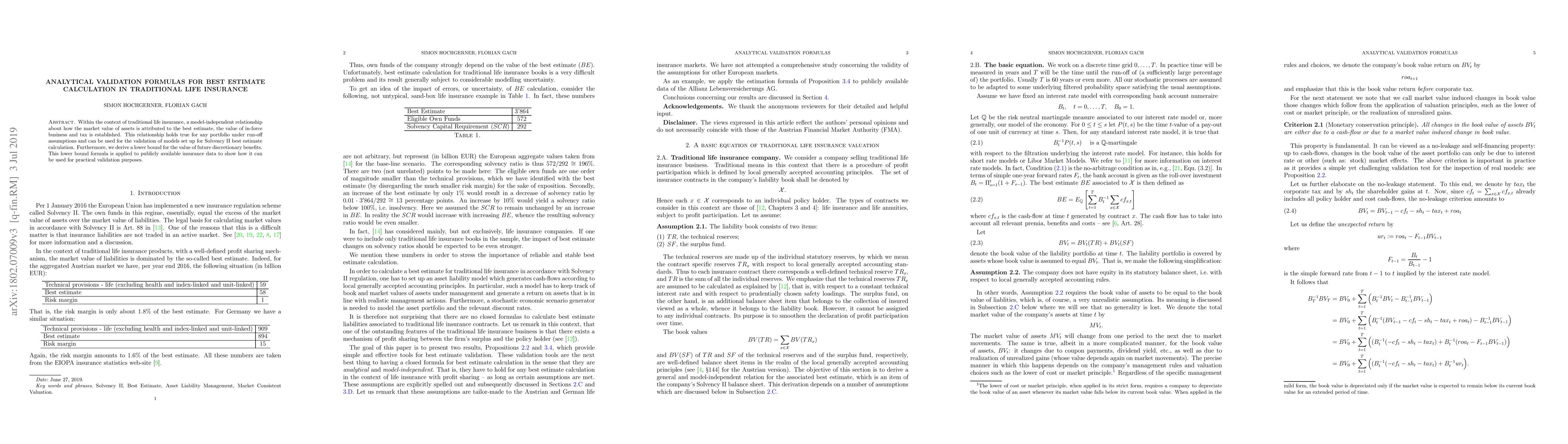 Within the context of traditional life insurance, a model-independent relationship about how the market value of assets is attributed to the best estimate, the value of in-force business and tax is established. This relationship holds true for any portfolio under run-off assumptions and can be used for the validation of models set up for Solvency~II best estimate calculation. Furthermore, we derive a lower bound for the value of future discretionary benefits. This lower bound formula is applied to publicly available insurance data to show how it can be used for practical validation purposes.