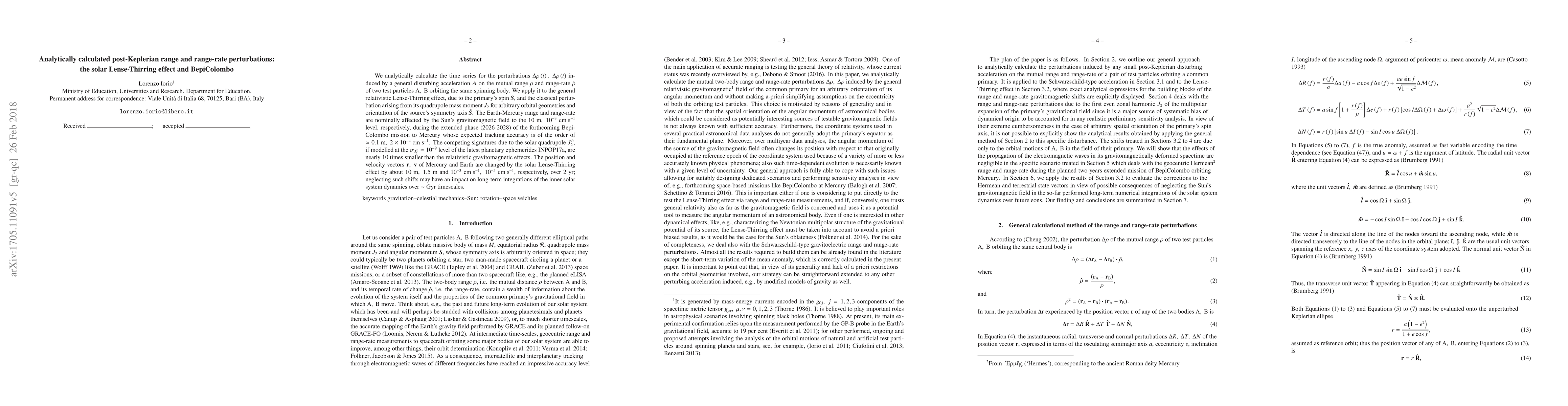 We analytically calculate the time series for the perturbations $\Delta\rho(t),~\Delta\dot\rho(t)$ induced by a general disturbing acceleration $\boldsymbol{A}$ on the mutual range $\rho$ and range-rate $\dot\rho$ of two test particles $\textrm{A},~\textrm{B}$ orbiting the same spinning body. We apply it to the general relativistic Lense-Thirring effect, due to the primary's spin $\boldsymbol{S}$, and the classical perturbation arising from its quadrupole mass moment $J_2$ for arbitrary orbital geometries and orientation of the source's symmetry axis $\boldsymbol{\hat{S}}$. The Earth-Mercury range and range-rate are nominally affected by the Sun's gravitomagnetic field to the $10~\textrm{m},~10^{-3}~\textrm{cm s}^{-1}$ level, respectively, during the extended phase (2026-2028) of the forthcoming BepiColombo mission to Mercury whose expected tracking accuracy is of the order of $\simeq 0.1~\textrm{m},~2\times 10^{-4}~\textrm{cm s}^{-1}$. The competing signatures due to the solar quadrupole $J_2^\odot$, if modelled at the $\sigma_{J_2^\odot}\simeq 10^{-9}$ level of the latest planetary ephemerides INPOP17a, are nearly 10 times smaller than the relativistic gravitomagnetic effects. The position and velocity vectors $\mathbf{r},~\mathbf{v}$ of Mercury and Earth are changed by the solar Lense-Thirring effect by about $10~\textrm{m},~1.5~\textrm{m}$ and $10^{-3}~\textrm{cm s}^{-1},~10^{-5}~\textrm{cm s}^{-1}$, respectively, over 2 yr; neglecting such shifts may have an impact on long-term integrations of the inner solar system dynamics over $\sim\textrm{Gyr}$ timescales.