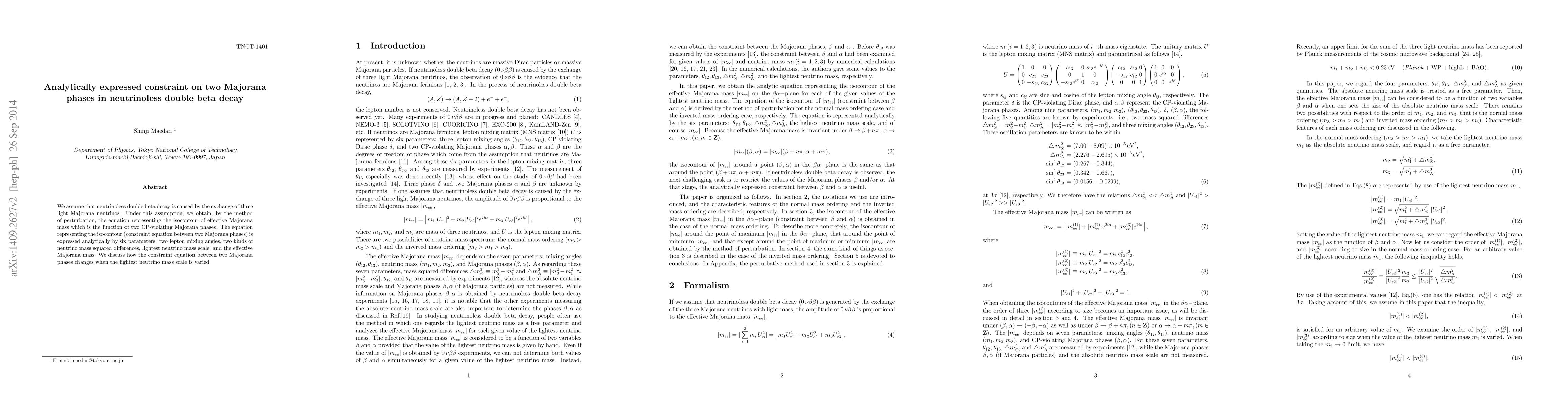 We assume that neutrinoless double beta decay is caused by the exchange of three light Majorana neutrinos. Under this assumption, we obtain, by the method of perturbation, the equation representing the isocontour of effective Majorana mass which is the function of two CP-violating Majorana phases. The equation representing the isocontour (constraint equation between two Majorana phases) is expressed analytically by six parameters: two lepton mixing angles, two kinds of neutrino mass squared differences, lightest neutrino mass scale, and the effective Majorana mass. We discuss how the constraint equation between two Majorana phases changes when the lightest neutrino mass scale is varied.