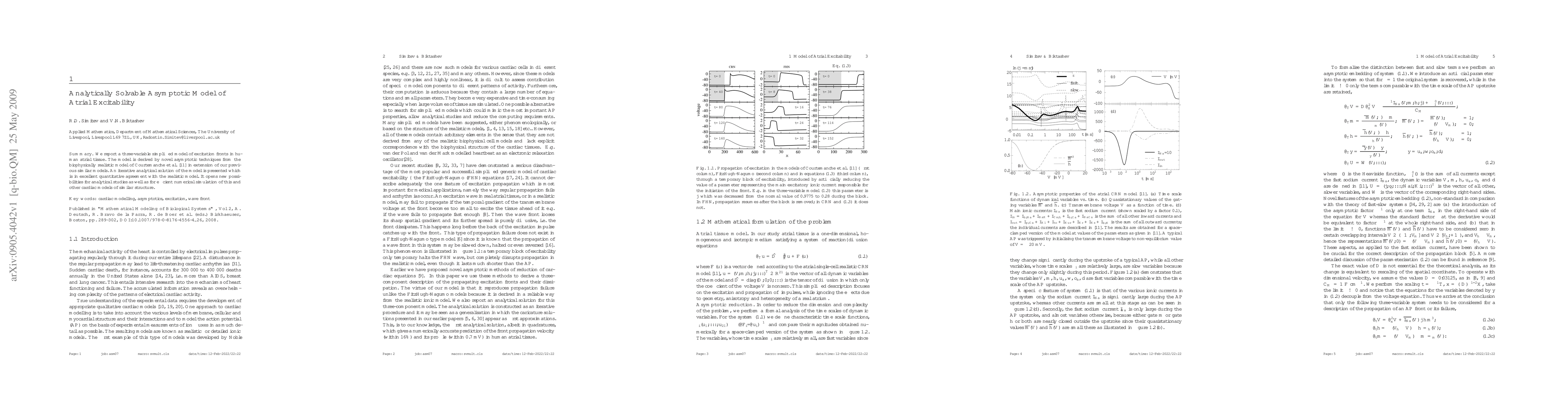 This paper presents a three-variable simplified model of atrial excitation fronts derived from a biophysically realistic model, offering an analytical solution that closely matches the original model. This new approach facilitates both analytical studies and efficient numerical simulations of cardiac models.
