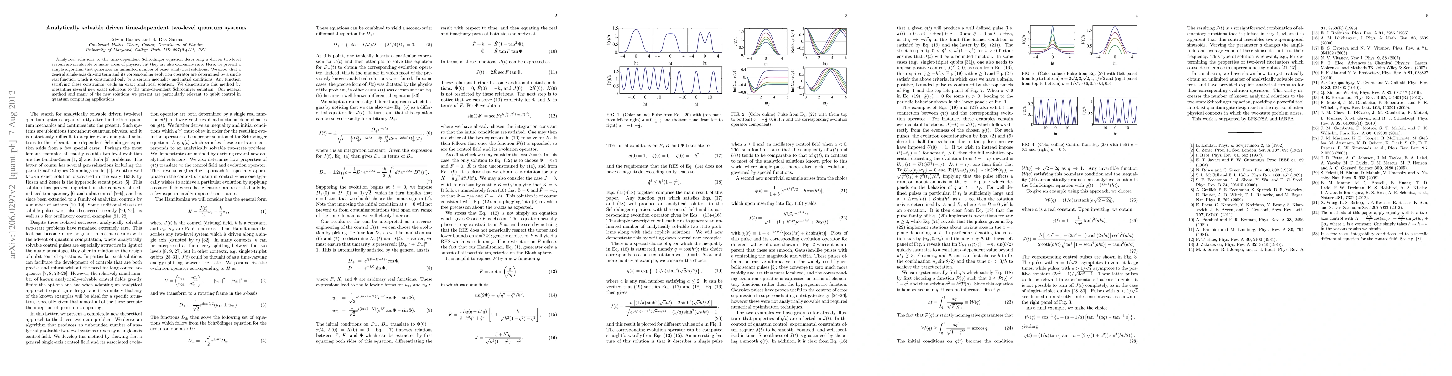 This paper introduces an algorithm for generating exact analytical solutions to the time-dependent Schrödinger equation for driven two-level quantum systems. The method relies on a single real function constrained by an inequality and initial conditions, applicable to qubit control in quantum computing.