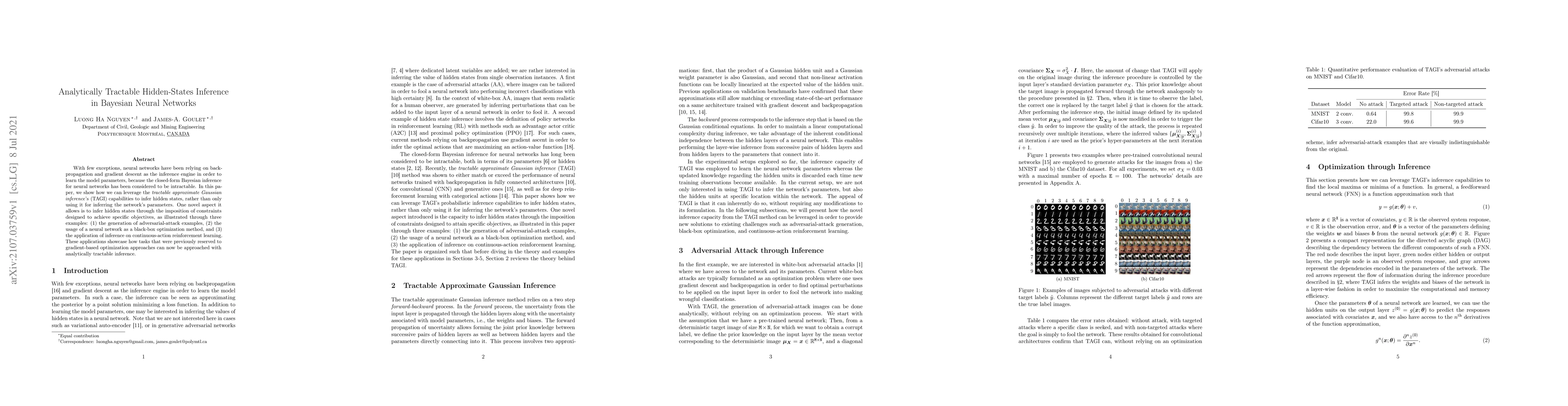 This paper introduces a method for analytically tractable hidden-states inference in Bayesian neural networks using tractable approximate Gaussian inference (TAGI). It demonstrates applications such as adversarial attack generation, black-box optimization, and continuous-action reinforcement learning, showing that these tasks can now be approached without relying solely on gradient-based optimization.