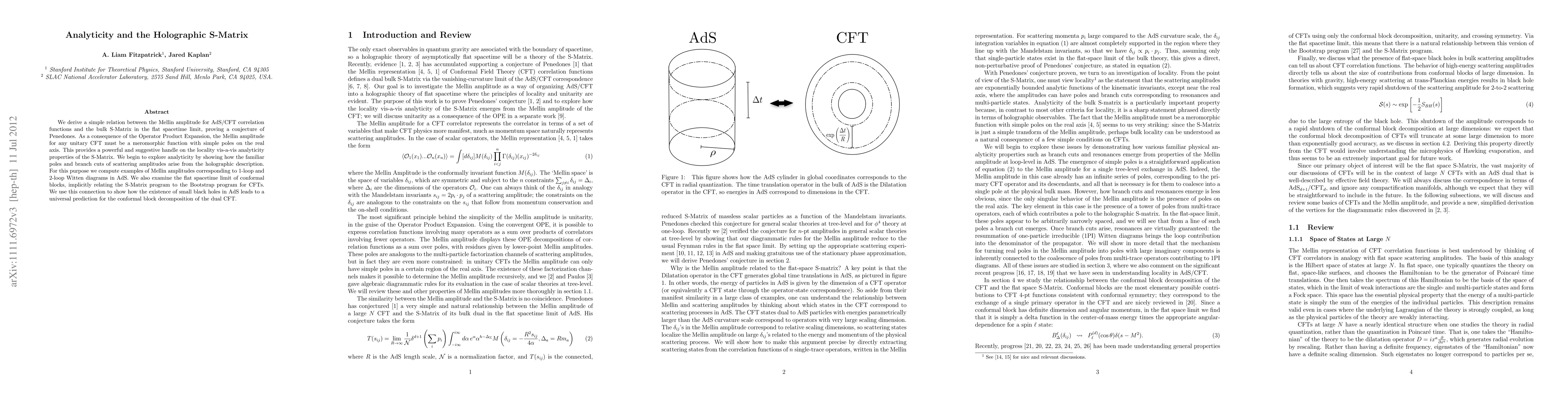 We derive a simple relation between the Mellin amplitude for AdS/CFT correlation functions and the bulk S-Matrix in the flat spacetime limit, proving a conjecture of Penedones. As a consequence of the Operator Product Expansion, the Mellin amplitude for any unitary CFT must be a meromorphic function with simple poles on the real axis. This provides a powerful and suggestive handle on the locality vis-a-vis analyticity properties of the S-Matrix. We begin to explore analyticity by showing how the familiar poles and branch cuts of scattering amplitudes arise from the holographic description. For this purpose we compute examples of Mellin amplitudes corresponding to 1-loop and 2-loop Witten diagrams in AdS. We also examine the flat spacetime limit of conformal blocks, implicitly relating the S-Matrix program to the Bootstrap program for CFTs. We use this connection to show how the existence of small black holes in AdS leads to a universal prediction for the conformal block decomposition of the dual CFT.