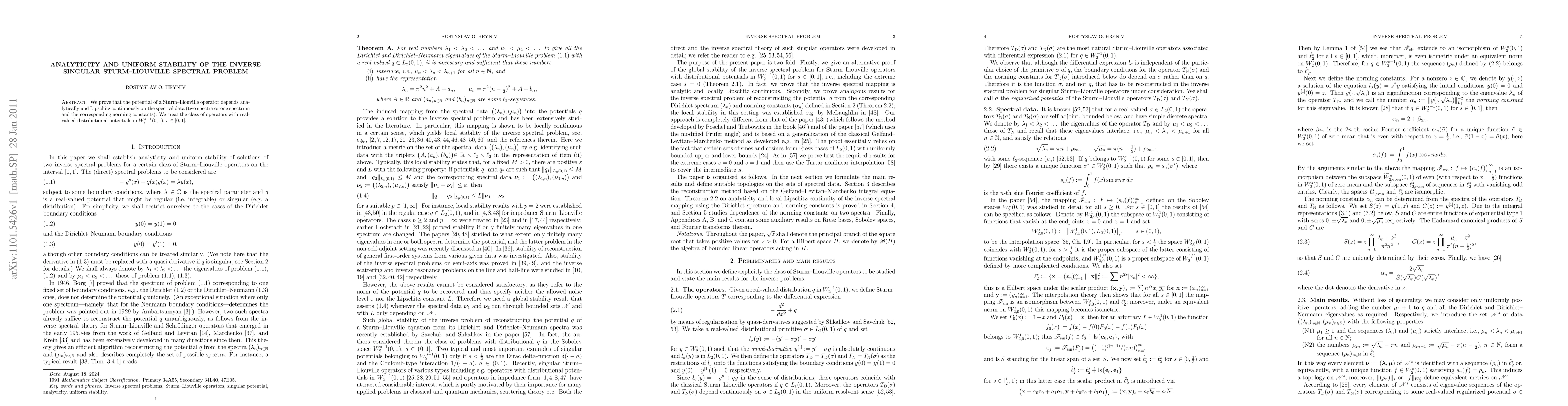 This research paper proves that a Sturm--Liouville operator's potential depends analytically on its spectral data, with continuous dependence on certain norms.