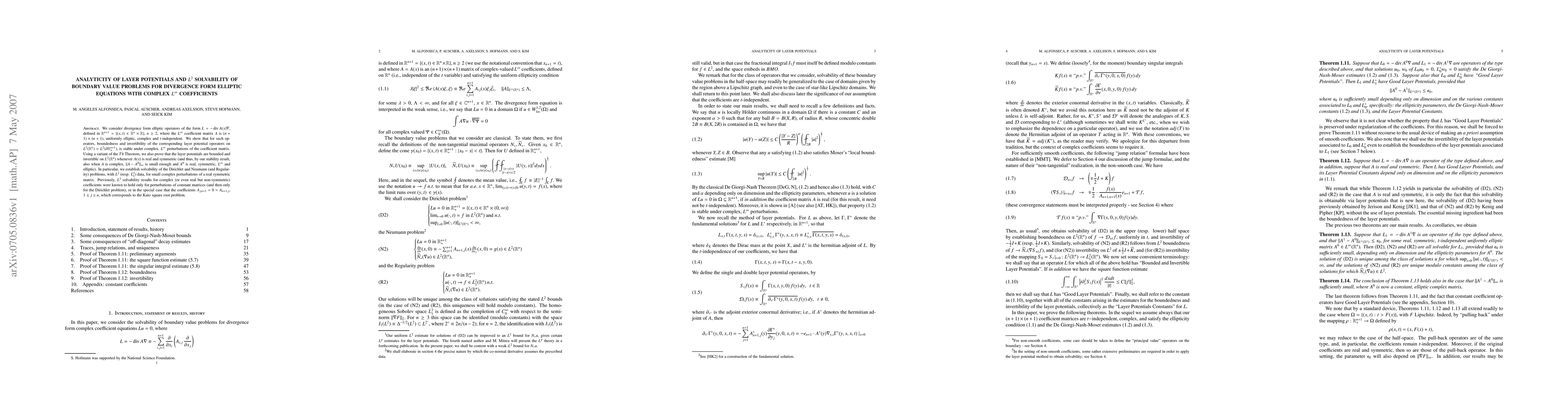 This paper proves the stability of layer potential operators for divergence form elliptic equations with complex, uniformly elliptic $L^{\infty}$ coefficients. It also establishes $L^2$ solvability for boundary value problems for small perturbations of real, symmetric matrices.