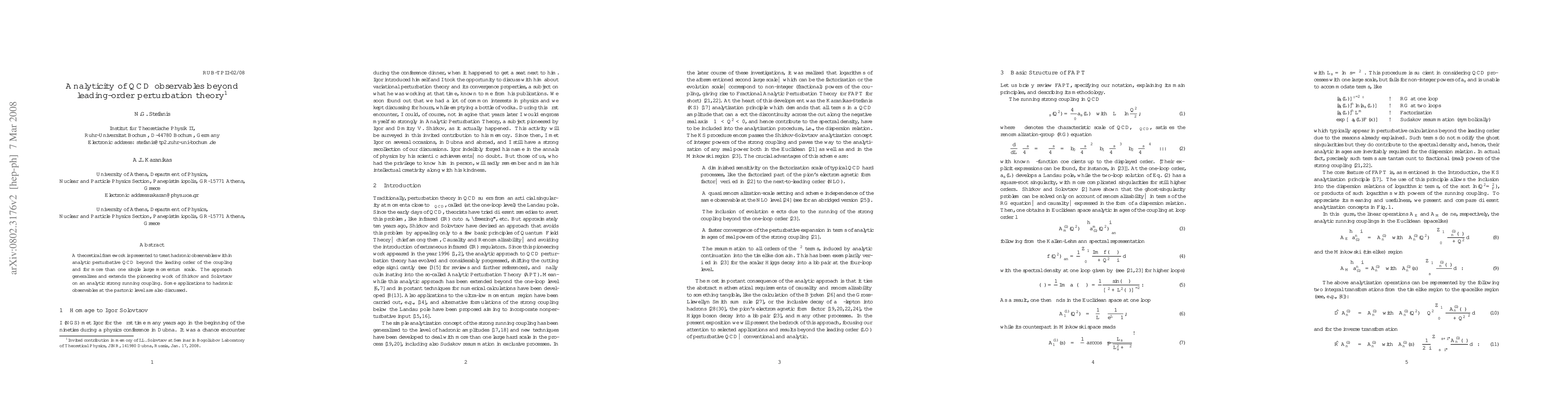 This paper develops a theoretical framework for analyzing hadronic observables in perturbative QCD beyond leading order, extending the work of Shirkov and Solovtsov on an analytic strong running coupling, and applies it to partonic level observables.