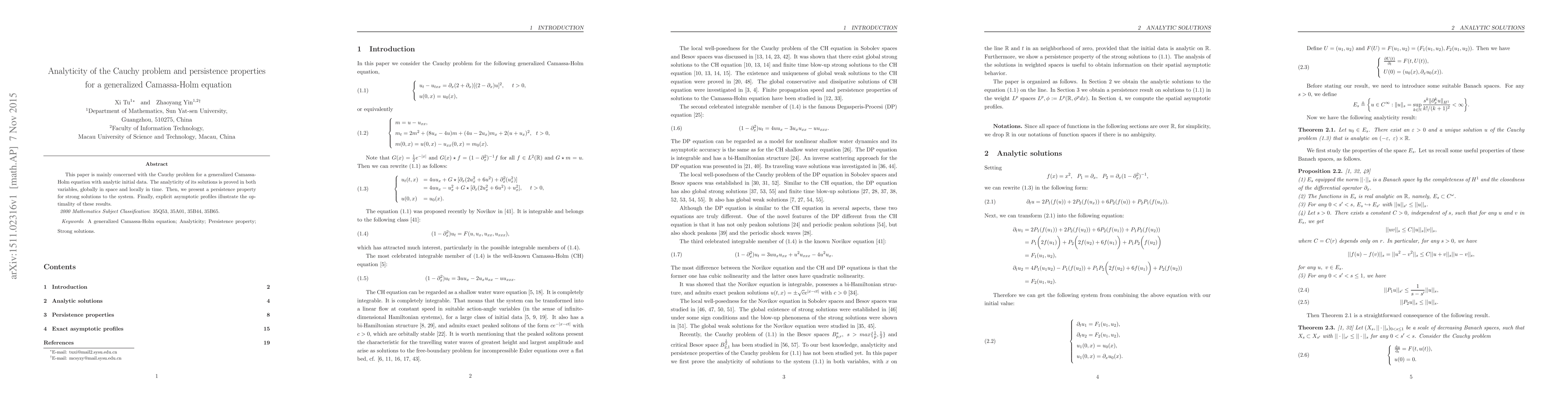 The novelty lies in extending the analyticity results to a generalized form of the Camassa-Holm equation and proving persistence properties, which were not addressed in previous works on the standard Camassa-Holm equation.