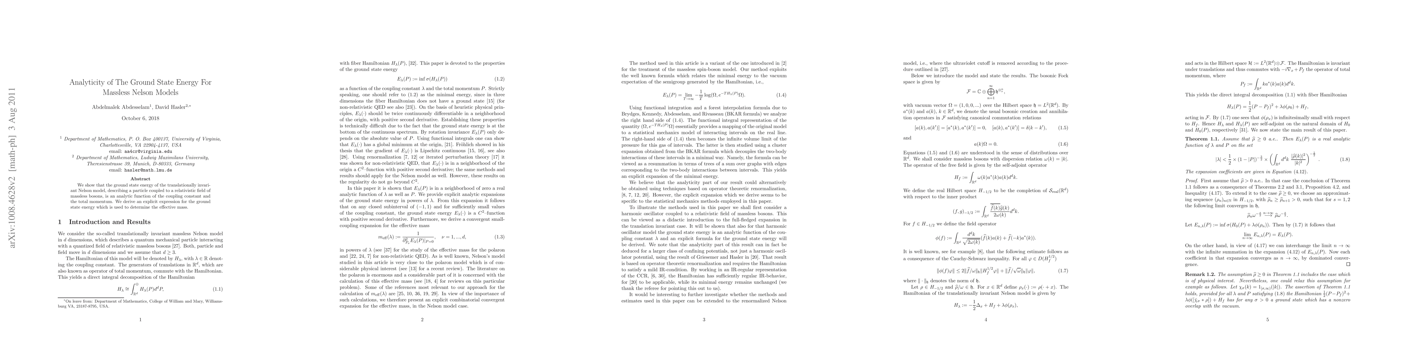 Researchers show that the ground state energy of a massless Nelson model is an analytic function of the coupling constant and total momentum, leading to a new understanding of its properties.