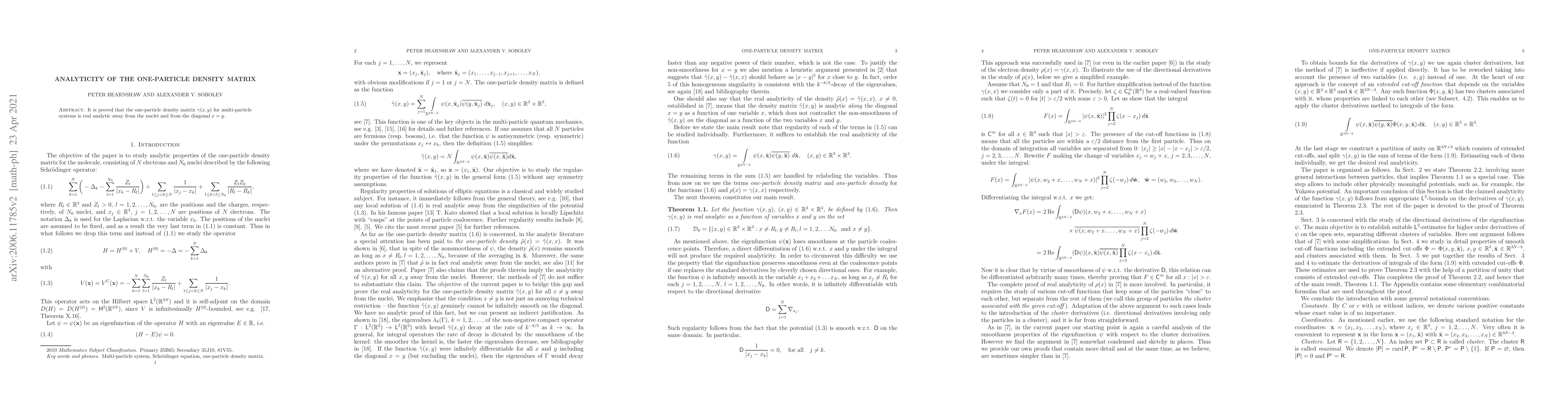Researchers have proven that the one-particle density matrix in multi-particle systems is analytic outside of specific regions, indicating its properties can be understood using analytical methods.