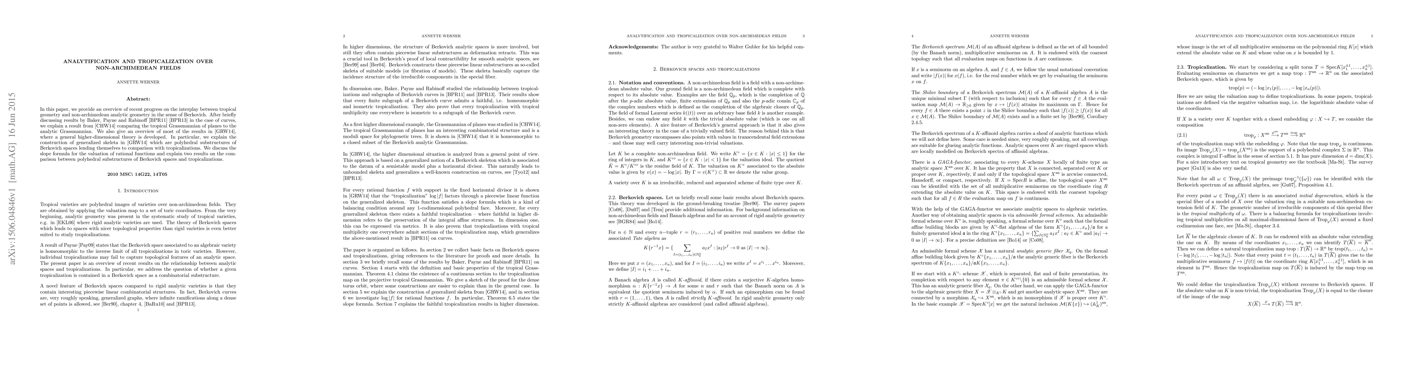 This paper reviews advancements in the relationship between tropical geometry and non-archimedean analytic geometry over Berkovich spaces, highlighting results on comparing tropical Grassmannians to analytic ones and the construction of generalized skeleta for higher-dimensional theories.