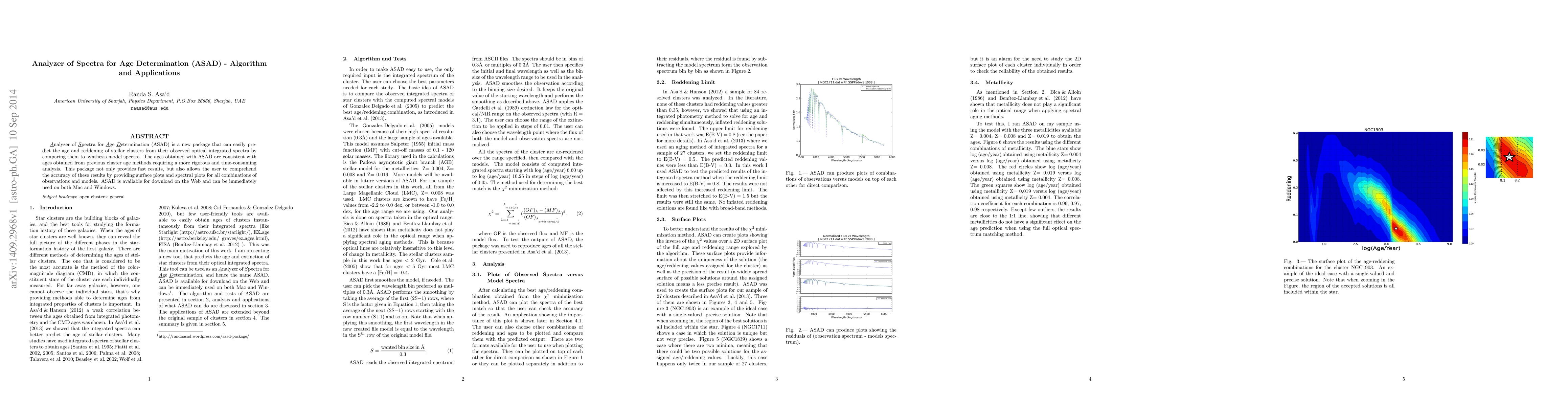 Analyzer of Spectra for Age Determination (ASAD) is a new package that can easily predict the age and reddening of stellar clusters from their observed optical integrated spectra by comparing them to synthesis model spectra. The ages obtained with ASAD are consistent with ages obtained from previous cluster age methods requiring a more rigorous and time-consuming analysis. This package not only provides fast results, but also allows the user to comprehend the accuracy of these results by providing surface plots and spectral plots for all combinations of observations and models. ASAD is available for download on the Web and can be immediately used on both Mac and Windows.