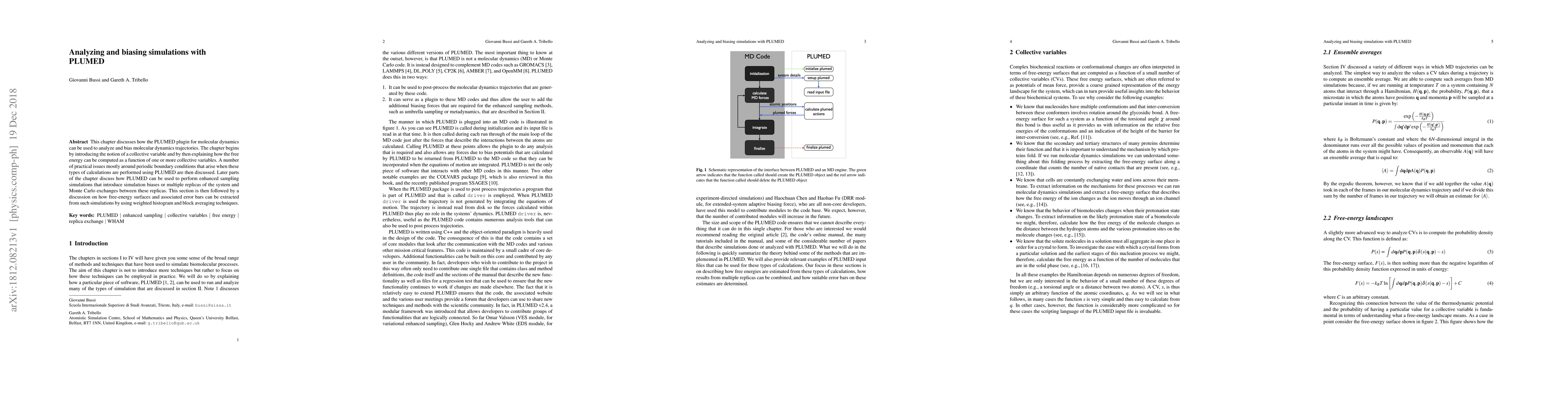 This paper explores the PLUMED plugin for molecular dynamics, detailing its use in analyzing and biasing simulations through collective variables, and discusses practical issues like periodic boundary conditions. It also covers enhanced sampling techniques and methods for extracting free-energy surfaces and error bars using weighted histogram and block averaging.