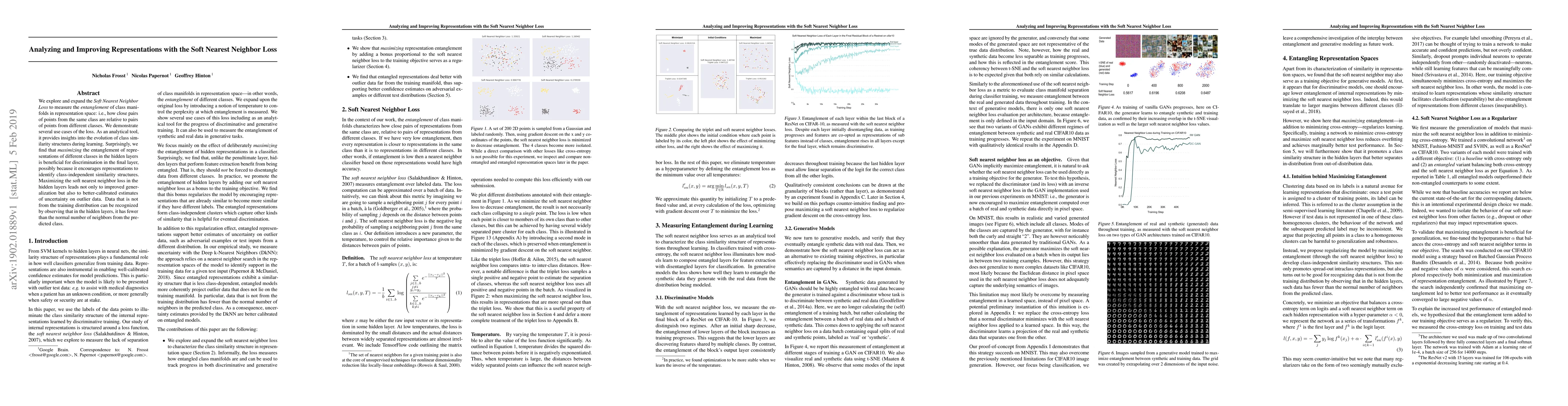 We explore and expand the $\textit{Soft Nearest Neighbor Loss}$ to measure the $\textit{entanglement}$ of class manifolds in representation space: i.e., how close pairs of points from the same class are relative to pairs of points from different classes. We demonstrate several use cases of the loss. As an analytical tool, it provides insights into the evolution of class similarity structures during learning. Surprisingly, we find that $\textit{maximizing}$ the entanglement of representations of different classes in the hidden layers is beneficial for discrimination in the final layer, possibly because it encourages representations to identify class-independent similarity structures. Maximizing the soft nearest neighbor loss in the hidden layers leads not only to improved generalization but also to better-calibrated estimates of uncertainty on outlier data. Data that is not from the training distribution can be recognized by observing that in the hidden layers, it has fewer than the normal number of neighbors from the predicted class.