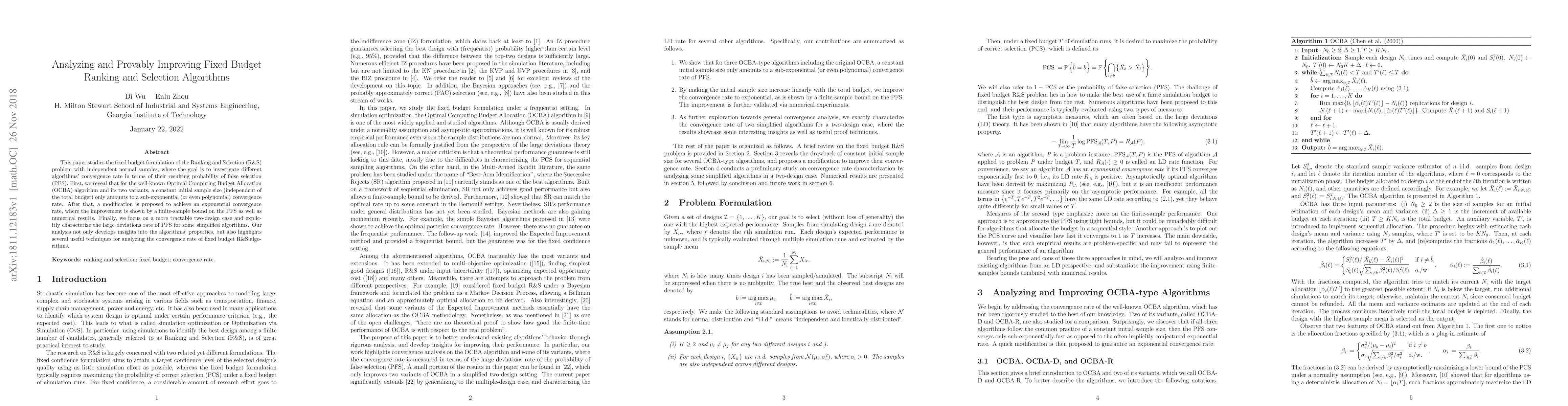 This paper investigates the convergence rates of fixed budget Ranking and Selection algorithms, revealing that existing methods like OCBA have sub-exponential convergence. It proposes a modified algorithm achieving exponential convergence, supported by theoretical bounds and numerical results, and provides insights into the convergence rate analysis for simpler cases.