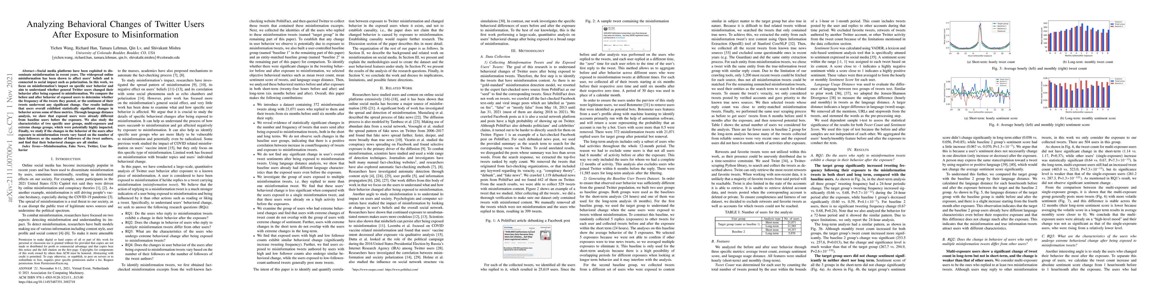 This study investigates behavioral changes in Twitter users following exposure to misinformation, finding significant shifts in tweet frequency and sentiment. It reveals that users already differed from baseline before exposure, with notable impacts on multi-exposure and extreme change groups, regardless of follower counts.