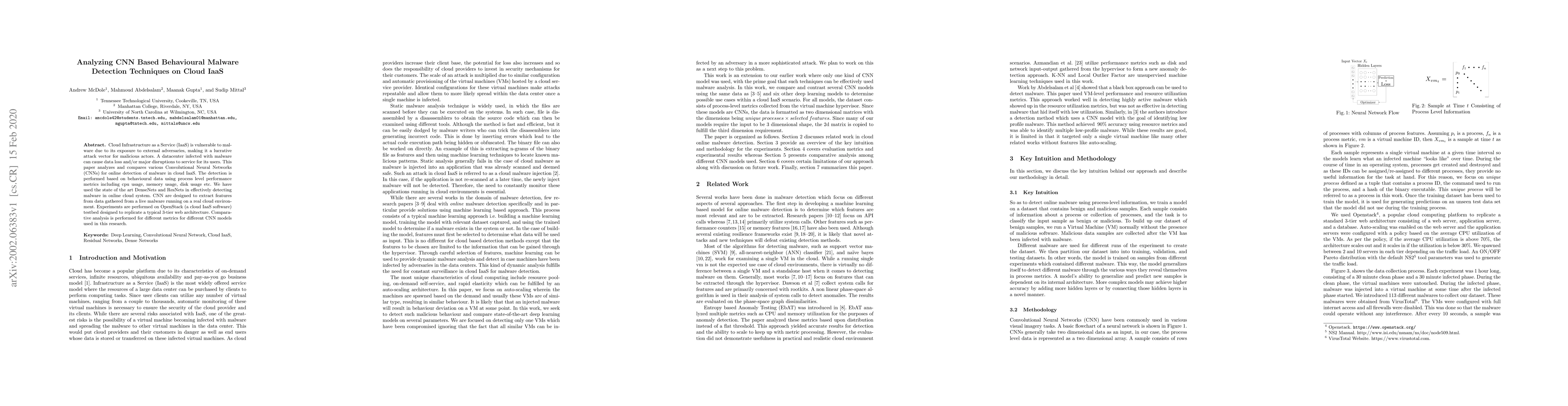 This research investigates the application of Convolutional Neural Networks (CNNs), specifically DenseNets and ResNets, for detecting malware in Cloud Infrastructure as a Service (IaaS) environments. The study focuses on behavioral data derived from process-level performance metrics, such as CPU, memory, and disk usage, to identify malware in real-time. The findings provide insights into the effectiveness of different CNN models for online malware detection in cloud systems.