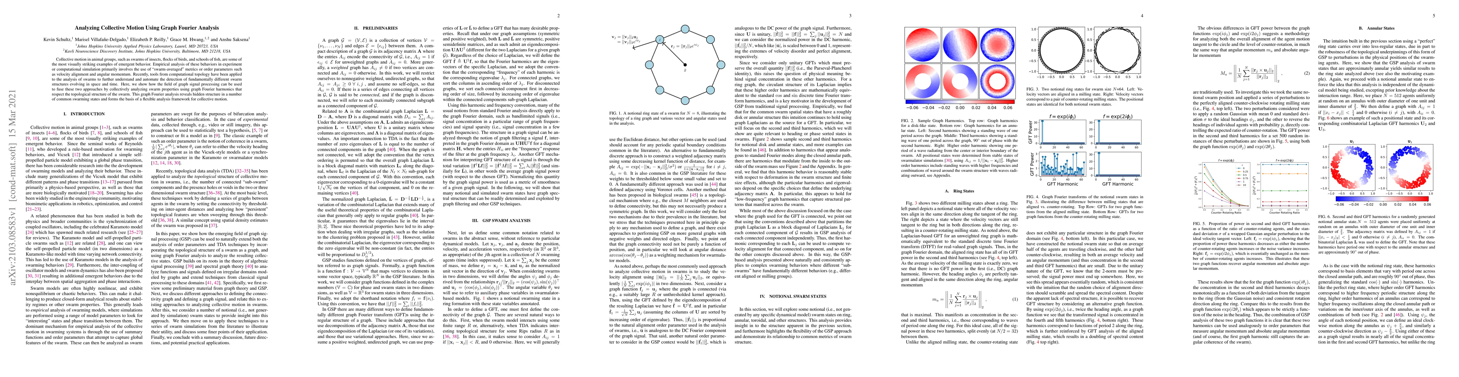 This paper employs graph Fourier analysis to study collective motion in animal groups, integrating computational topology with traditional metrics to reveal hidden structures in swarm behaviors. The proposed framework provides a flexible method for analyzing and detecting different swarm configurations.