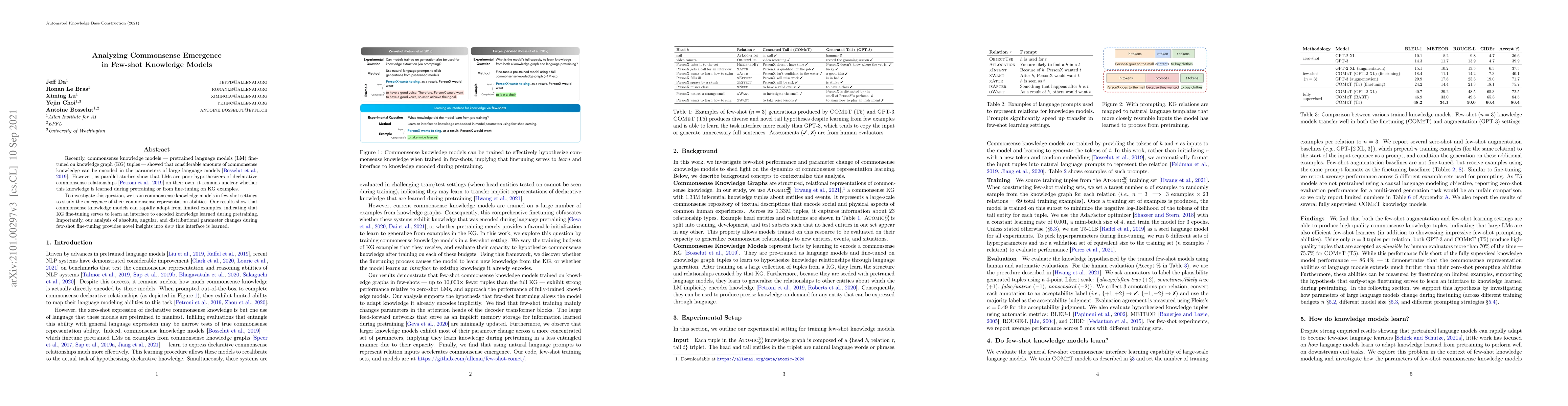 This paper investigates how few-shot fine-tuning of large language models on knowledge graph tuples enables the rapid emergence of commonsense knowledge abilities. Findings suggest that this knowledge primarily stems from the pretraining phase, with fine-tuning refining an interface to the encoded knowledge.
