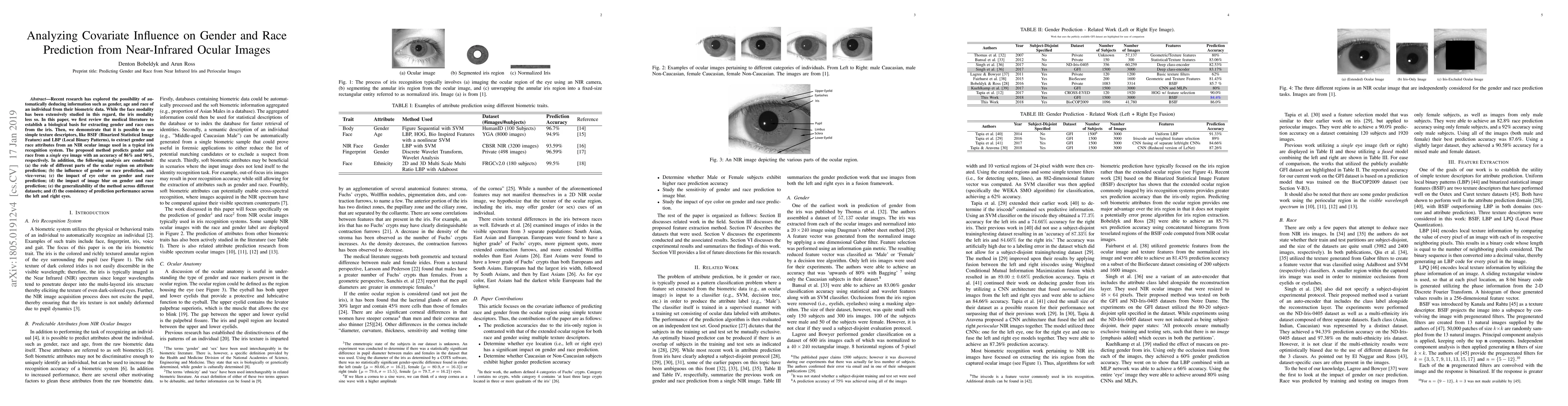 This paper investigates the potential of predicting gender and race from near-infrared ocular images using texture descriptors like BSIF and LBP, achieving 86% and 90% accuracy respectively. It also analyzes covariate influences such as eye color, image blur, and the generalizability of the method across datasets.