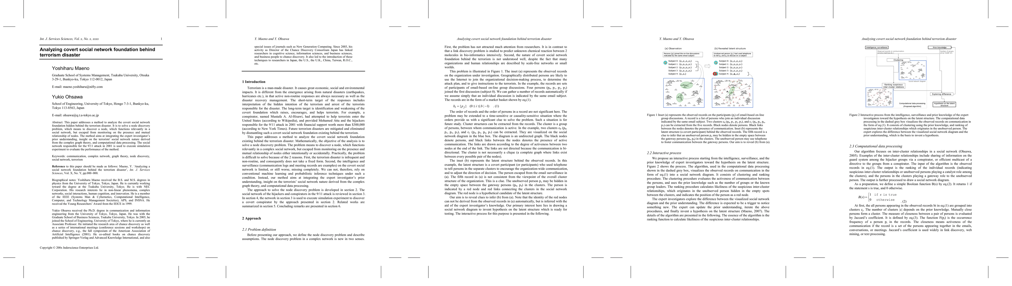 This paper proposes a method to analyze hidden social networks behind terrorism disasters, using expert insights and computational data processing. It evaluates the performance of the method on the 9/11 attack, aiming to improve node discovery in complex social networks.