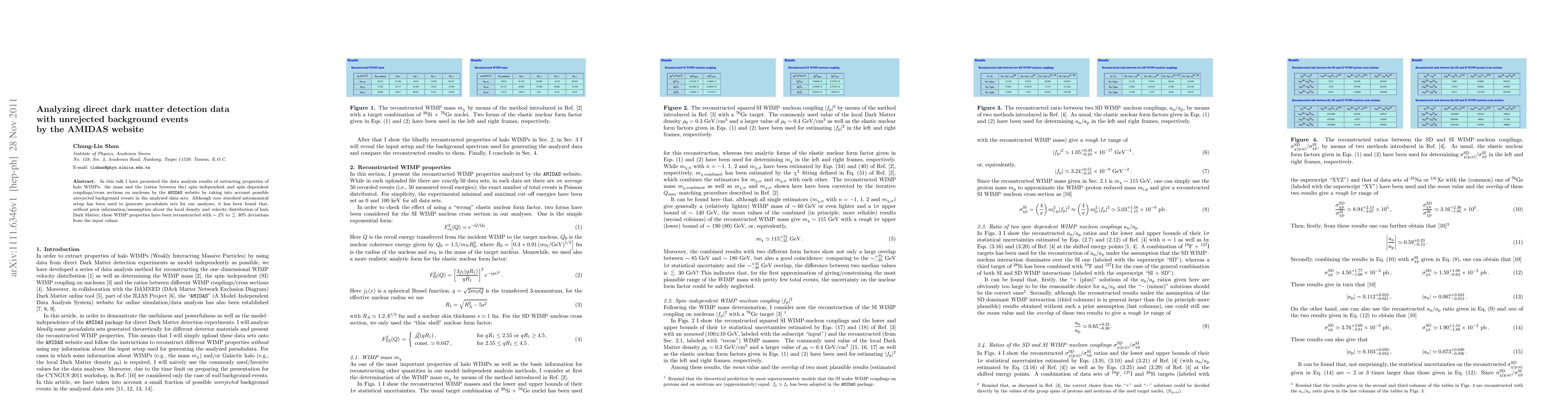 In this talk I have presented the data analysis results of extracting properties of halo WIMPs: the mass and the (ratios between the) spin-independent and spin-dependent couplings/cross sections on nucleons by the AMIDAS website by taking into account possible unrejected background events in the analyzed data sets. Although non-standard astronomical setup has been used to generate pseudodata sets for our analyses, it has been found that, without prior information/assumption about the local density and velocity distribution of halo Dark Matter, these WIMP properties have been reconstructed with ~ 2% to <~ 30% deviations from the input values.