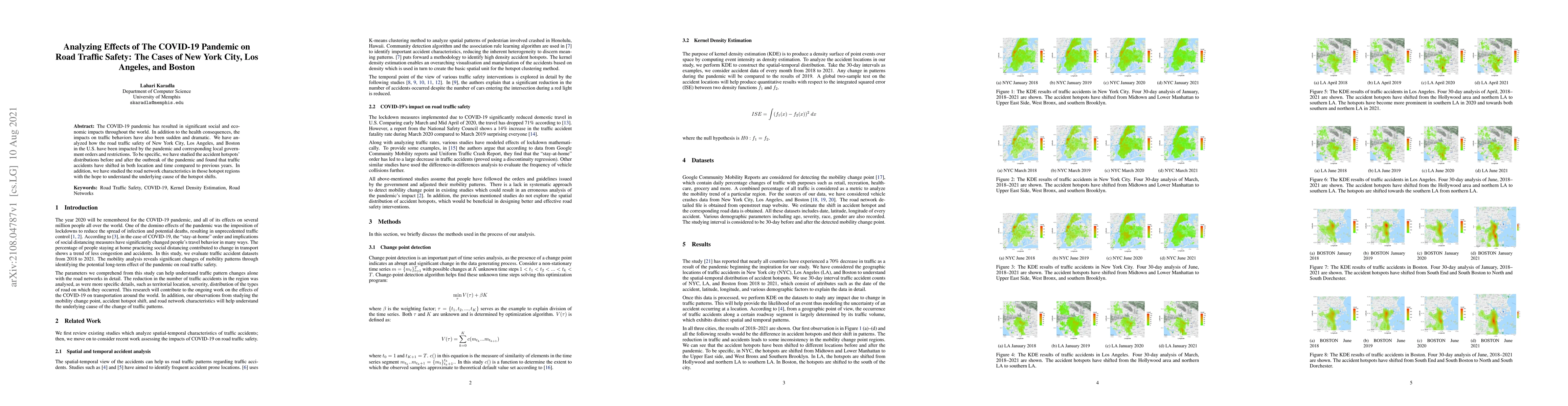 This paper examines the impact of the COVID-19 pandemic on road traffic safety in New York City, Los Angeles, and Boston, finding shifts in accident hotspots' locations and times. The study also analyzes road network characteristics in these hotspots to identify underlying causes of changes.