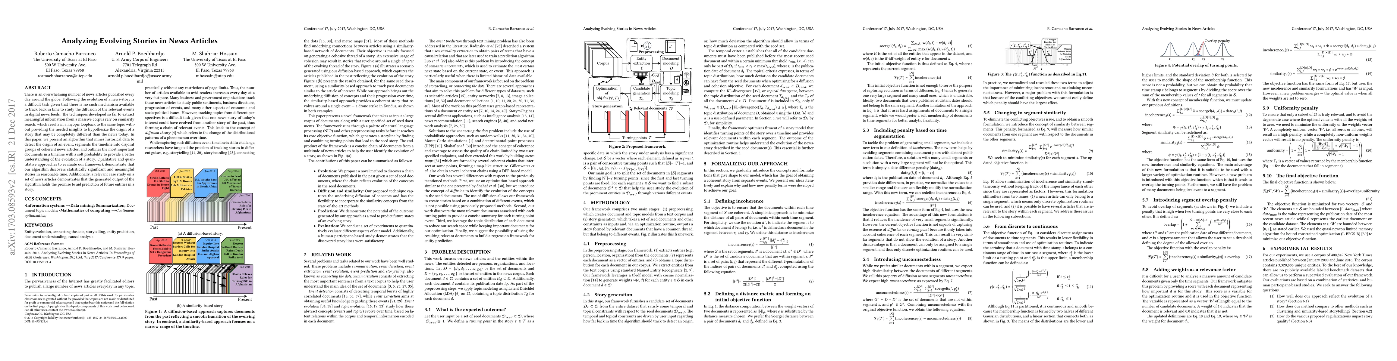 There is an overwhelming number of news articles published every day around the globe. Following the evolution of a news-story is a difficult task given that there is no such mechanism available to track back in time to study the diffusion of the relevant events in digital news feeds. The techniques developed so far to extract meaningful information from a massive corpus rely on similarity search, which results in a myopic loopback to the same topic without providing the needed insights to hypothesize the origin of a story that may be completely different than the news today. In this paper, we present an algorithm that mines historical data to detect the origin of an event, segments the timeline into disjoint groups of coherent news articles, and outlines the most important documents in a timeline with a soft probability to provide a better understanding of the evolution of a story. Qualitative and quantitative approaches to evaluate our framework demonstrate that our algorithm discovers statistically significant and meaningful stories in reasonable time. Additionally, a relevant case study on a set of news articles demonstrates that the generated output of the algorithm holds the promise to aid prediction of future entities in a story.