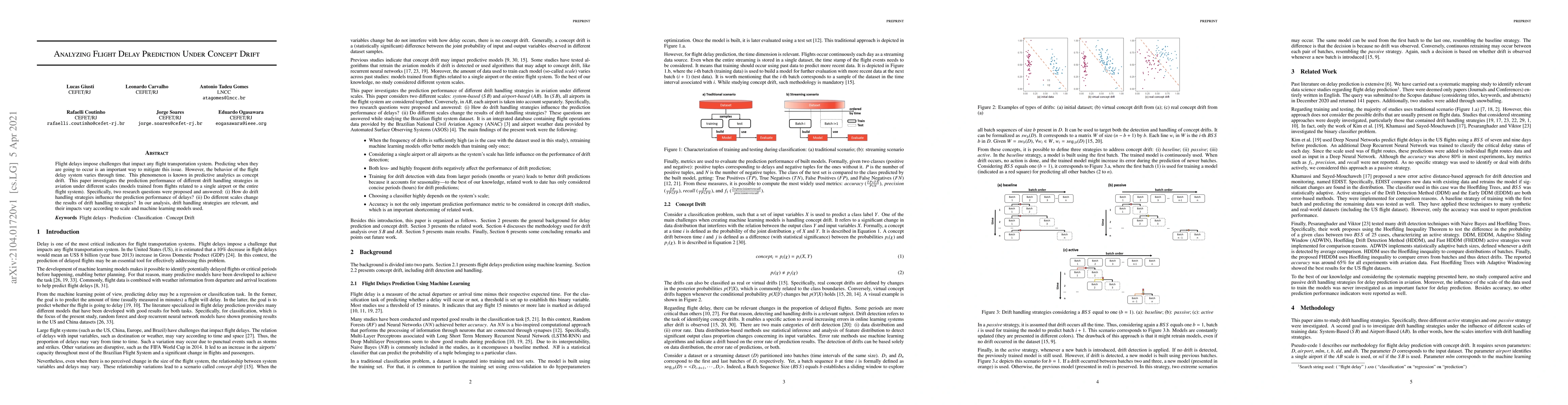 This paper examines flight delay prediction under concept drift, analyzing how different drift handling strategies affect prediction performance. The study finds that the effectiveness of these strategies varies depending on the scale of the flight system and the specific machine learning models employed.