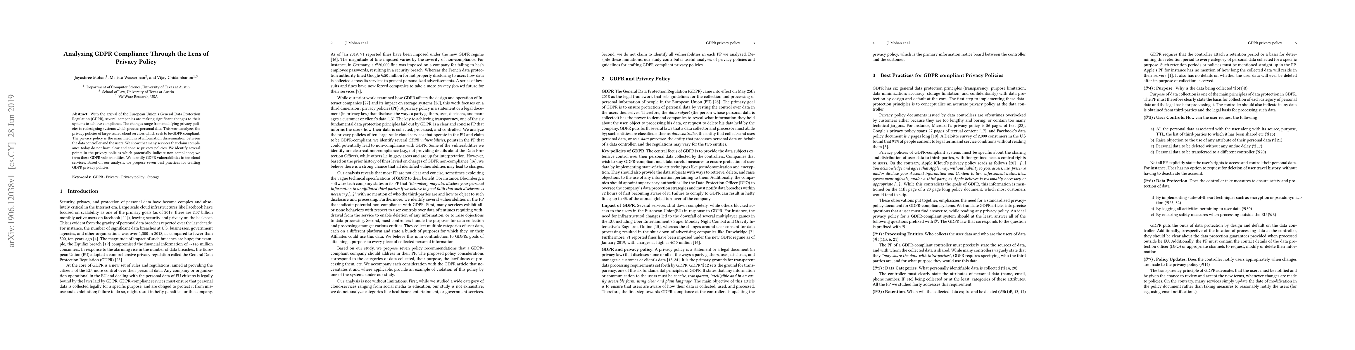 This research analyzed privacy policies of large-scale cloud services to identify vulnerabilities that could result in GDPR non-compliance.
