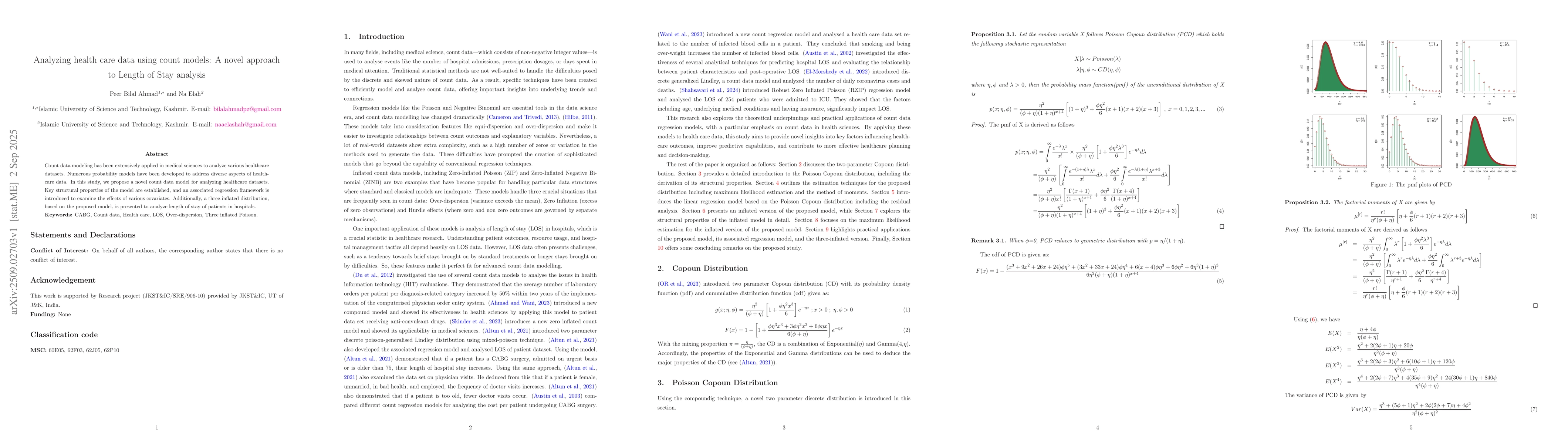 Count data modeling has been extensively applied in medical sciences to analyze various healthcare datasets. Numerous probability models have been developed to address diverse aspects of healthcare data. In this study, we propose a novel count data model for analyzing healthcare datasets. Key structural properties of the model are established, and an associated regression framework is introduced to examine the effects of various covariates. Additionally, a three-inflated distribution, based on the proposed model, is presented to analyze length of stay of patients in hospitals.