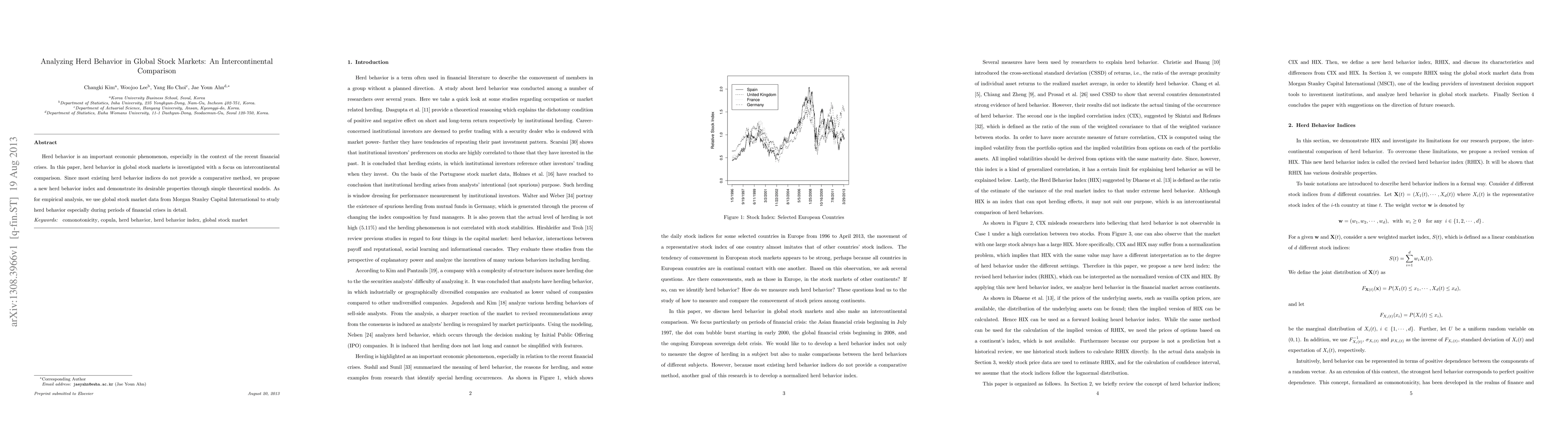 This paper proposes a new herd behavior index for comparing herd behavior across global stock markets, demonstrating its effectiveness through theoretical models. Empirical analysis using MSCI data reveals detailed herd behavior patterns, especially during financial crises.