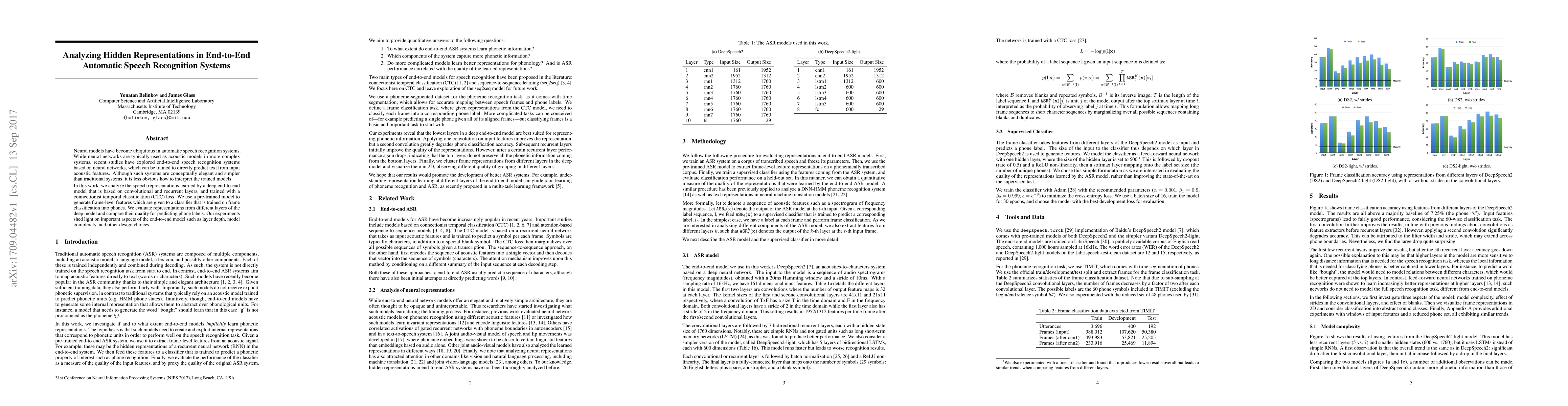 This paper investigates the hidden speech representations learned by a deep end-to-end neural model for automatic speech recognition, focusing on how different layers contribute to phoneme prediction. The study reveals insights into model complexity and design choices affecting representation quality.