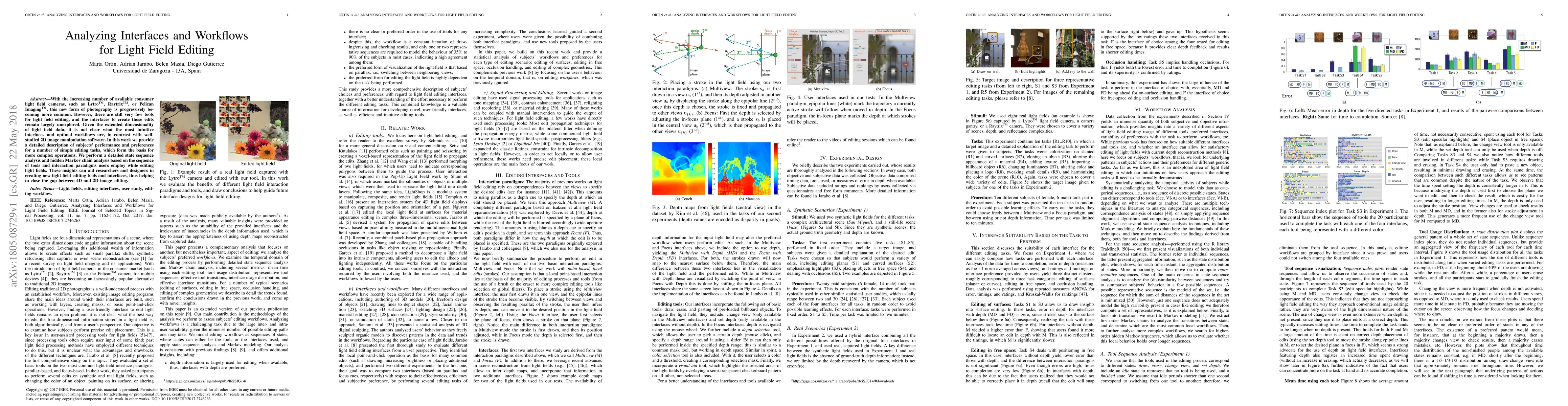 This paper investigates the performance and preferences of users performing simple light field editing tasks to identify optimal interfaces and workflows. It employs state sequence and hidden Markov chain analysis to understand user interaction patterns, aiming to inform the development of more intuitive light field editing tools.