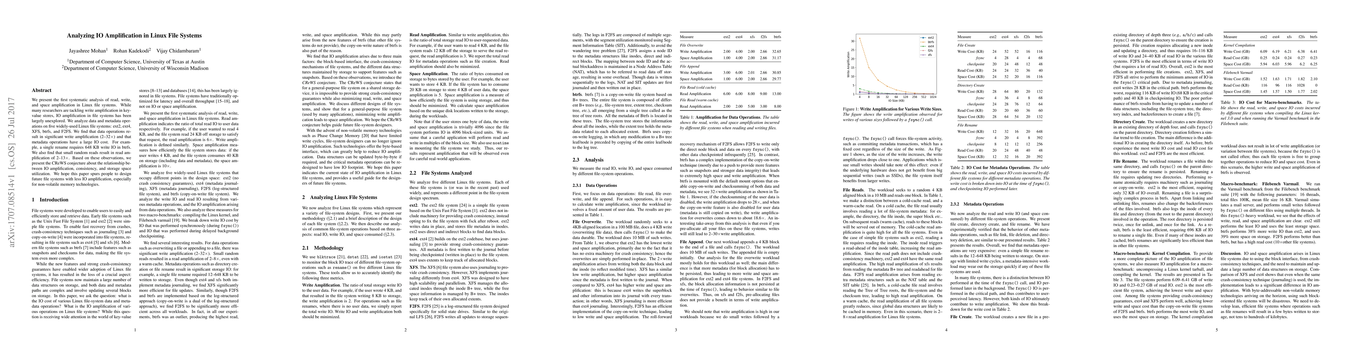 This paper systematically analyzes read, write, and space amplification in five popular Linux file systems, revealing significant write amplification in data operations and high IO costs in metadata operations. The study proposes the CReWS conjecture linking IO amplification with consistency and storage efficiency, aiming to inspire future file system designs with reduced IO amplification.
