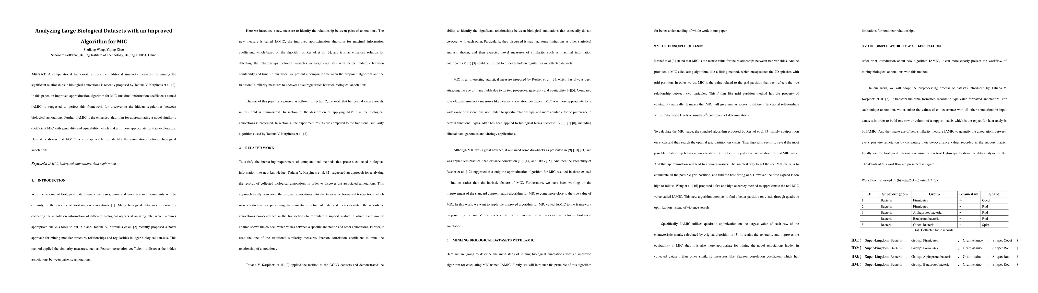 A computational framework utilizes the traditional similarity measures for mining the significant relationships in biological annotations is recently proposed by Tatiana V. Karpinets et al. [2]. In this paper, an improved approximation algorithm for MIC (maximal information coefficient) named IAMIC is suggested to perfect this framework for discovering the hidden regularities between biological annotations. Further, IAMIC is the enhanced algorithm for approximating a novel similarity coefficient MIC with generality and equitability, which makes it more appropriate for data exploration. Here it is shown that IAMIC is also applicable for identify the associations between biological annotations.