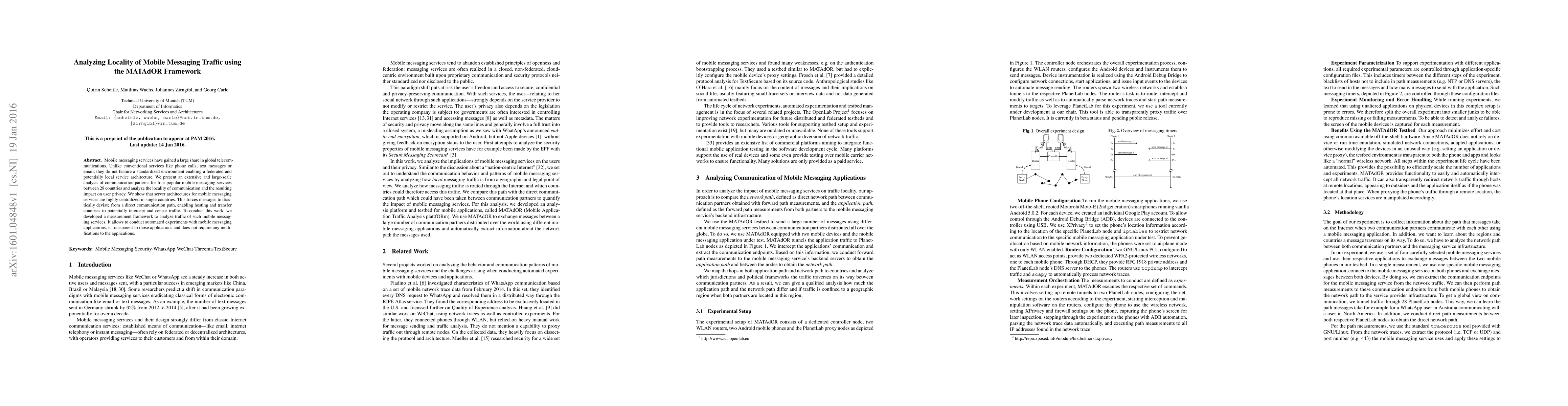 This paper analyzes the communication patterns of four popular mobile messaging services across 28 countries using the MATAdOR framework, revealing highly centralized server architectures that compromise message locality and user privacy. The developed measurement framework enables automated, transparent traffic analysis without application modifications.