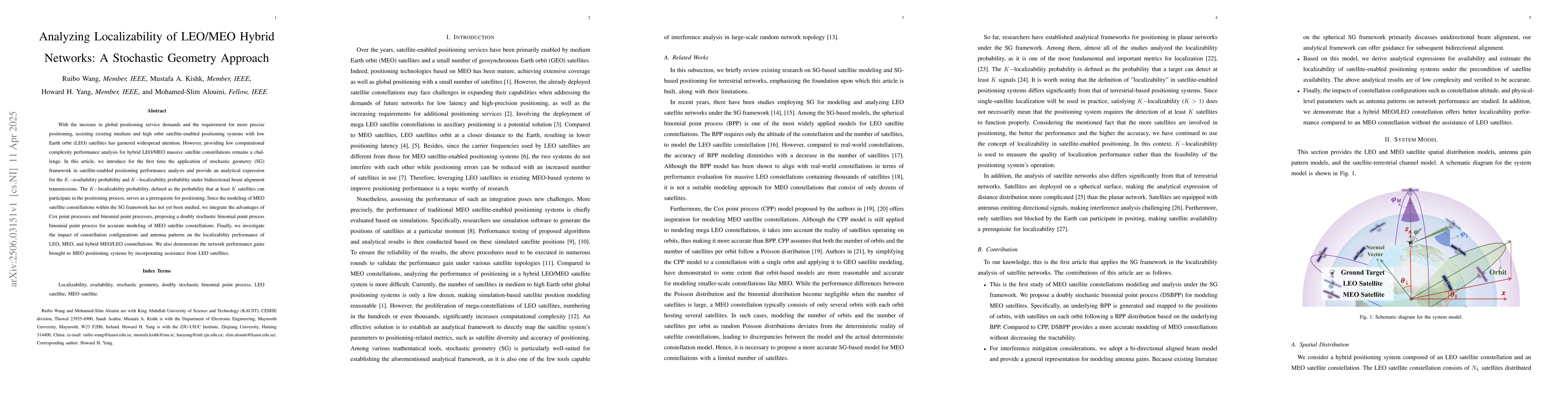 This paper introduces a stochastic geometry approach to analyze the localizability of hybrid LEO/MEO satellite networks, providing new insights into the impact of constellation configurations on positioning performance.