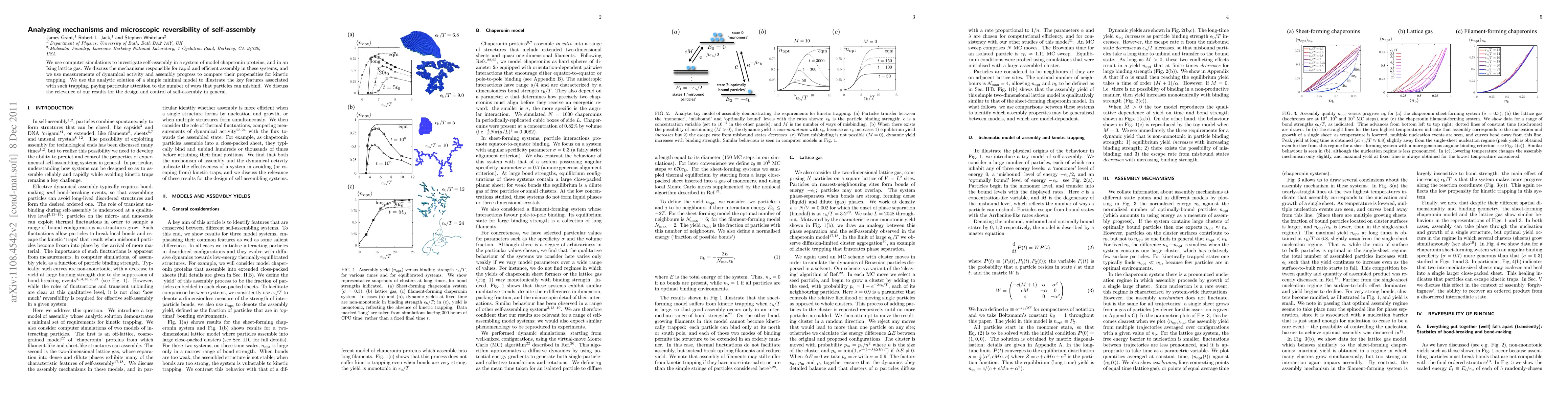 This paper employs computer simulations to explore the mechanisms behind efficient self-assembly in model chaperonin proteins and an Ising lattice gas, comparing their susceptibility to kinetic trapping and highlighting the role of misbinding in assembly processes. The findings have implications for the design and control of self-assembly systems.