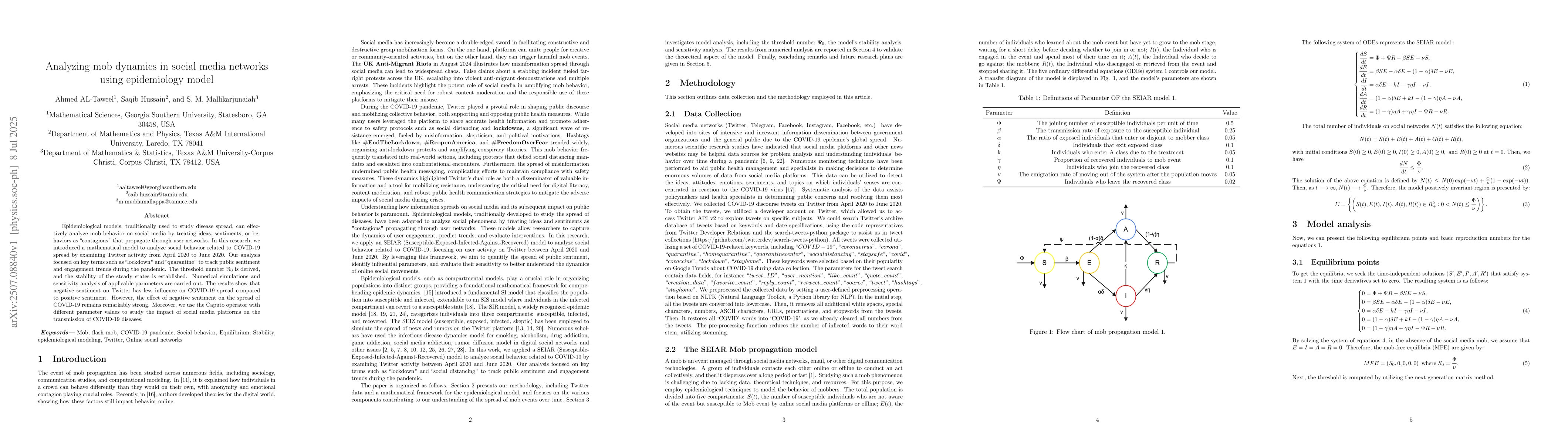 Epidemiological models, traditionally used to study disease spread, can effectively analyze mob behavior on social media by treating ideas, sentiments, or behaviors as ``contagions" that propagate through user networks. In this research, we introduced a mathematical model to analyze social behavior related to COVID-19 spread by examining Twitter activity from April 2020 to June 2020. Our analysis focused on key terms such as ``lockdown" and ``quarantine" to track public sentiment and engagement trends during the pandemic. The threshold number $\Re_{0}$ is derived, and the stability of the steady states is established. Numerical simulations and sensitivity analysis of applicable parameters are carried out. The results show that negative sentiment on Twitter has less influence on COVID-19 spread compared to positive sentiment. However, the effect of negative sentiment on the spread of COVID-19 remains remarkably strong. Moreover, we use the Caputo operator with different parameter values to study the impact of social media platforms on the transmission of COVID-19 diseases.